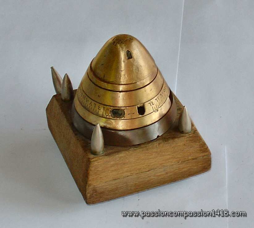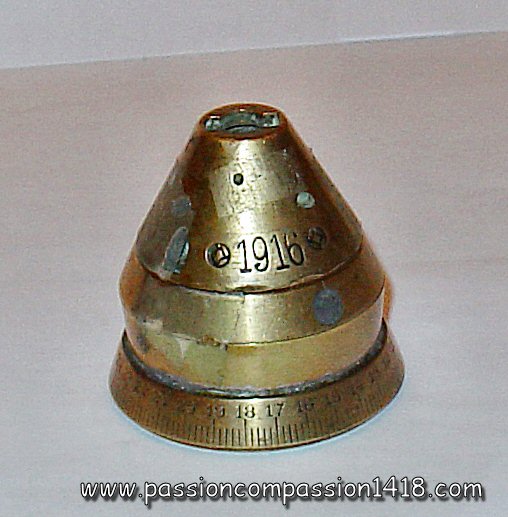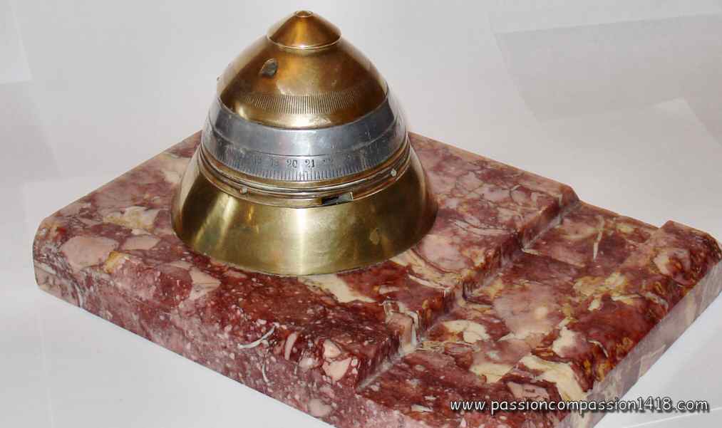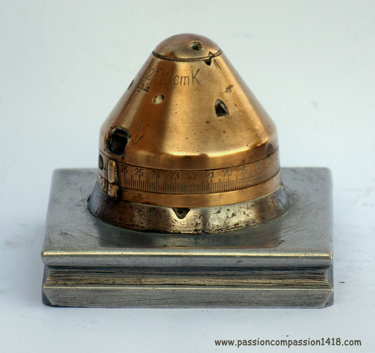 Ce presse-papier est fabriqué sur base d'une fusée turque à double effet pour canon de 75mm M 1903 de fabrication allemande.