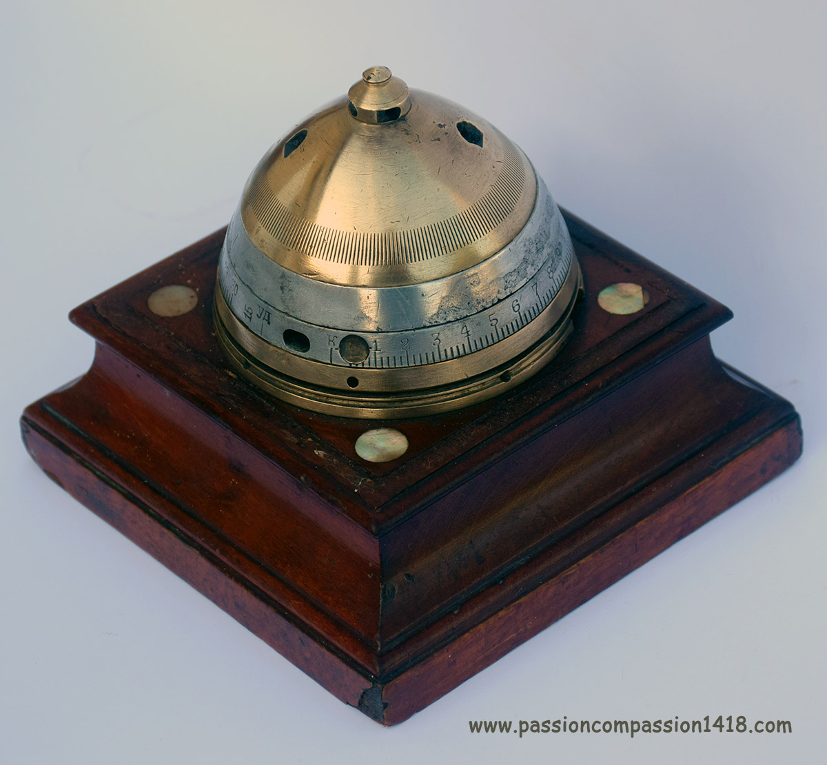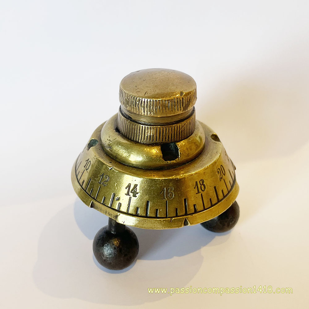 Celui qui a réalisé cet encrier simple a bien eu de la chance de pouvoir disposer d'une volumineuse Fusée russe à double effet de 45 secondes , en très bon état et plutôt rare, dont la masse importante et la noblesse des matéraux (aluminium et laiton) lui ont semblé suffisants à eux-mêmes pour son oeuvre.