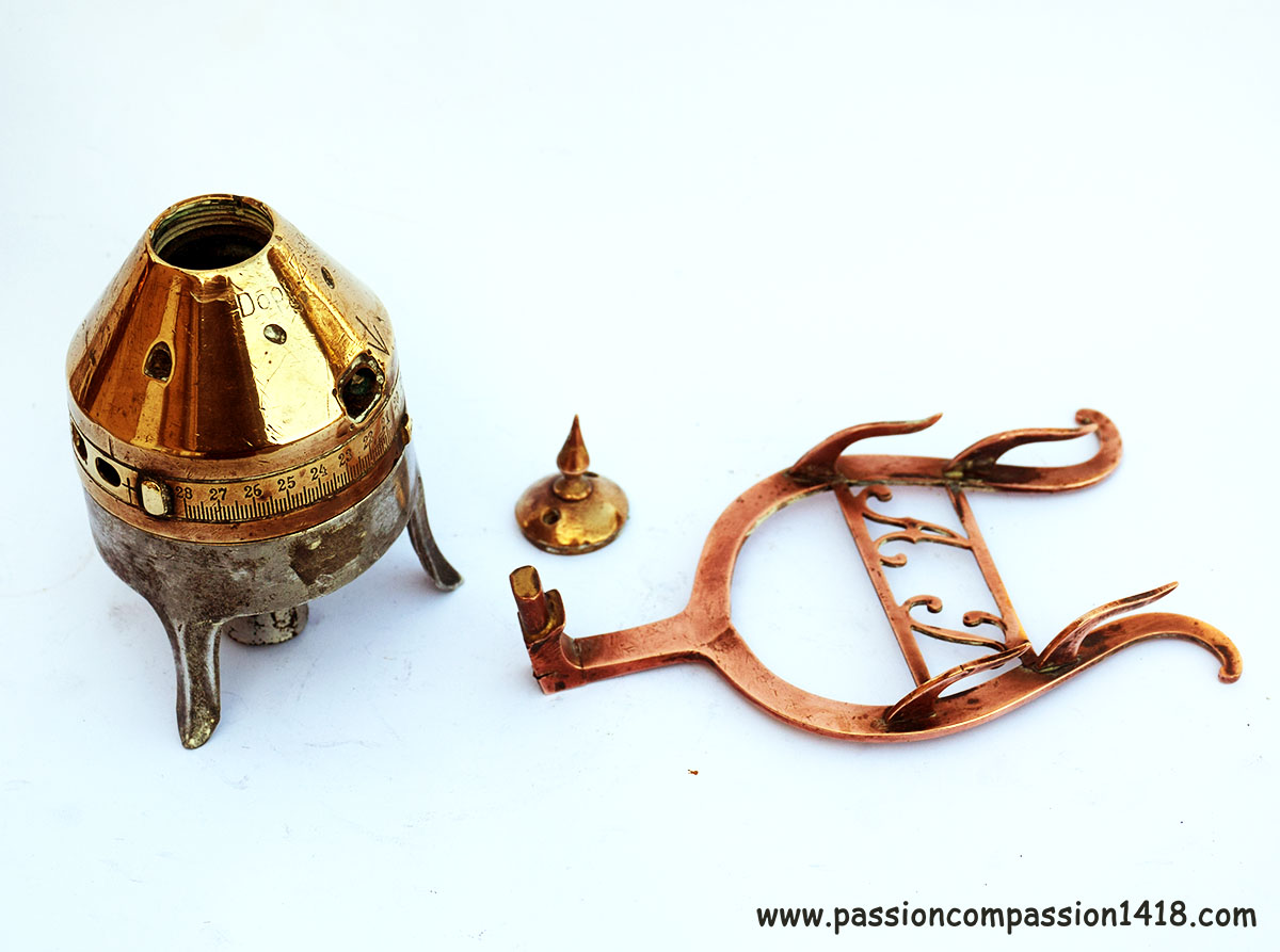 - la coiffe amovible (dévissable) pour accéder au réservoir à encre est équipée d'une petite anse en cuivre,
