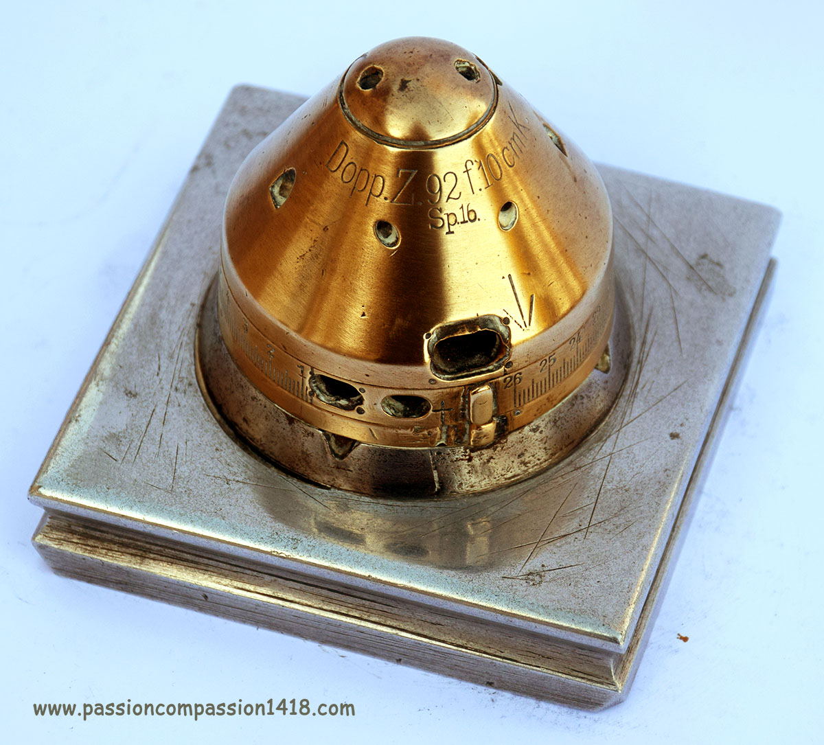 Le poilu qui a réalisé cet encrier a dû improviser un peu puisqu'il n'a pu récupérer que la partie supérieure d'une fusée à double effet allemande Dopp Z 96 n/A pour contruire un encrier. Il a donc reconstitué la partie absente avec une pièce grossièrement moulée en aluminium dont la forme n'évoque que vaguement la forme du bas de la fusée et d'une ceinture de guidage. .