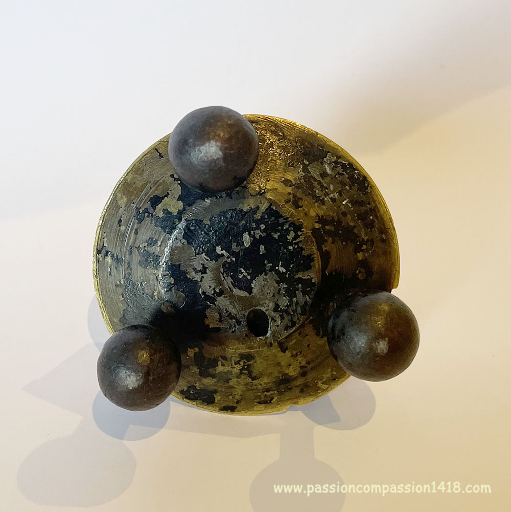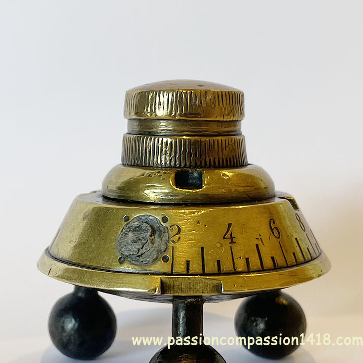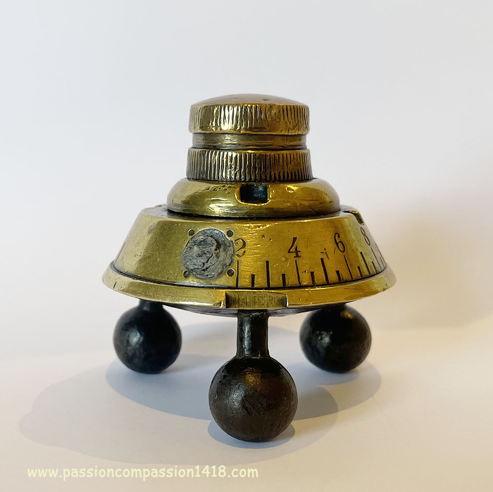 Entirely made of brass, this fuze had two percussion systems aligned vertically in the same central axial channel : From the fuze tail to the fuze base, this pyrotechnic column was composed of