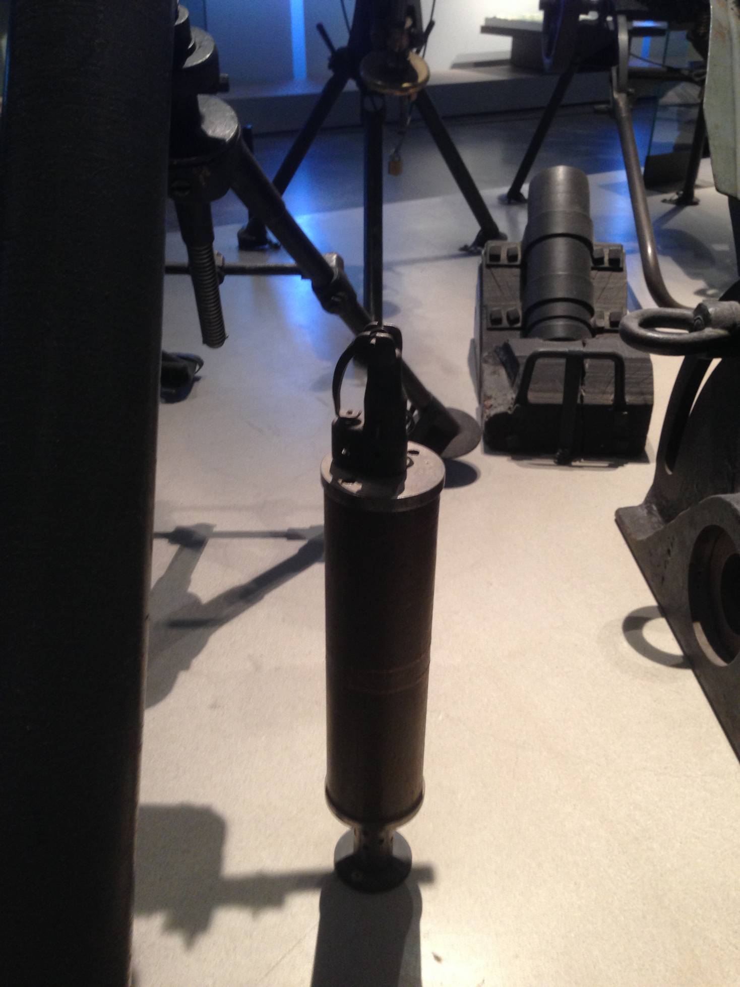 The ammunition was a simple cylinder equipped with a modified grenade percussion detonator at one end, and a propulsive charge cartridge at the other end. Using that weapon was very simple, since one just had to let the round fall into the tube so that the propulsive cartidge would hit a percussion pin, and was ignited.