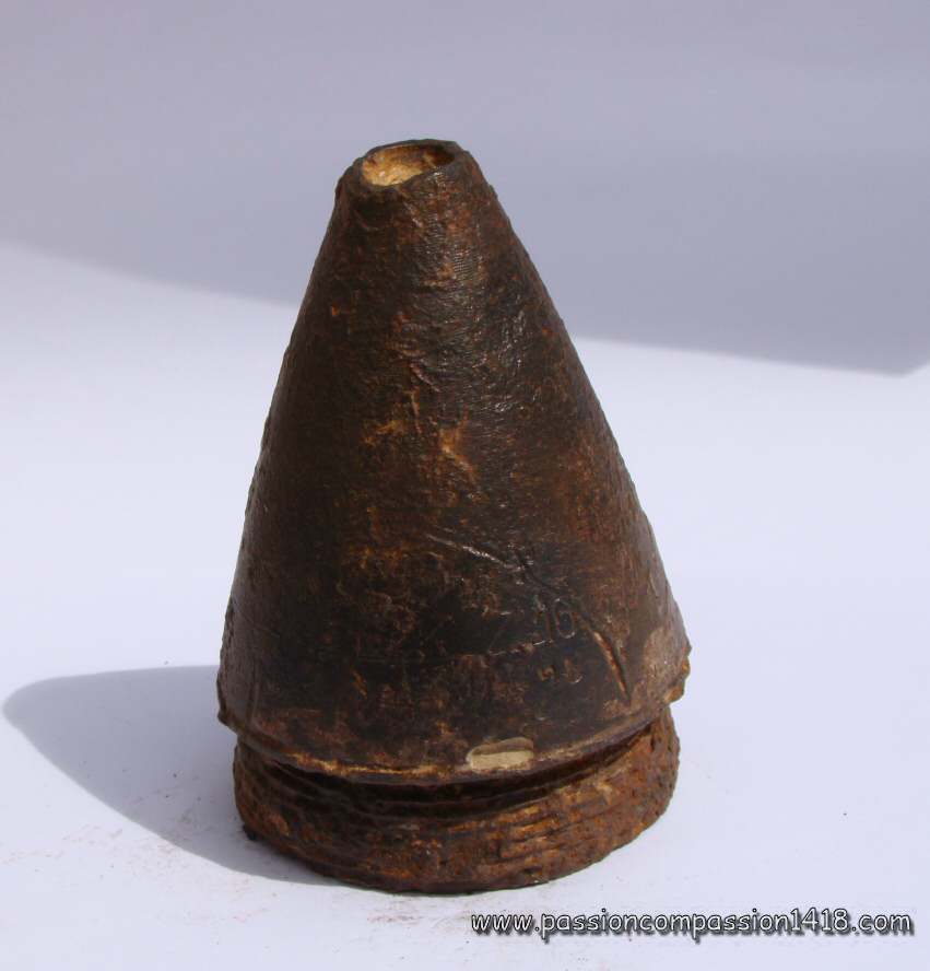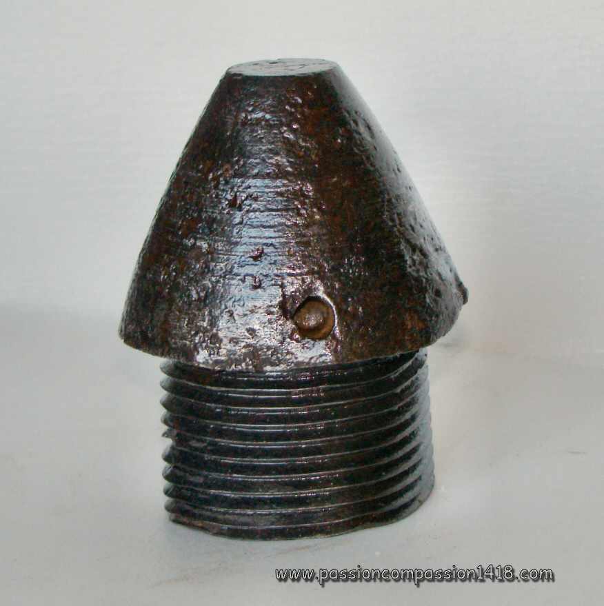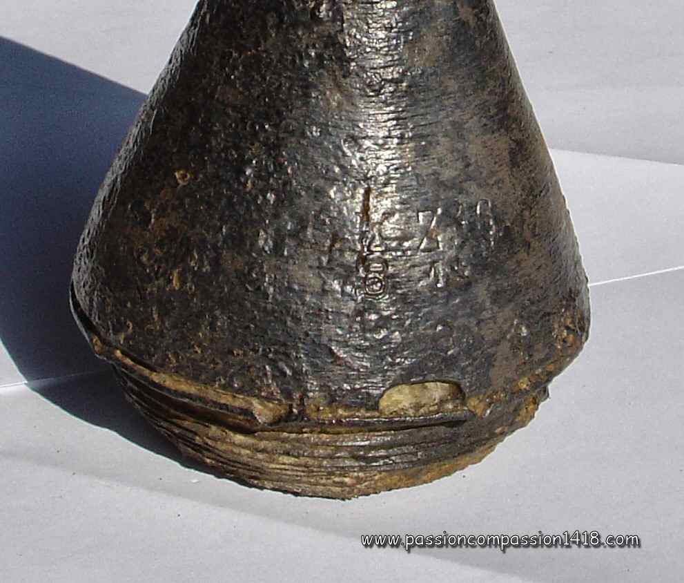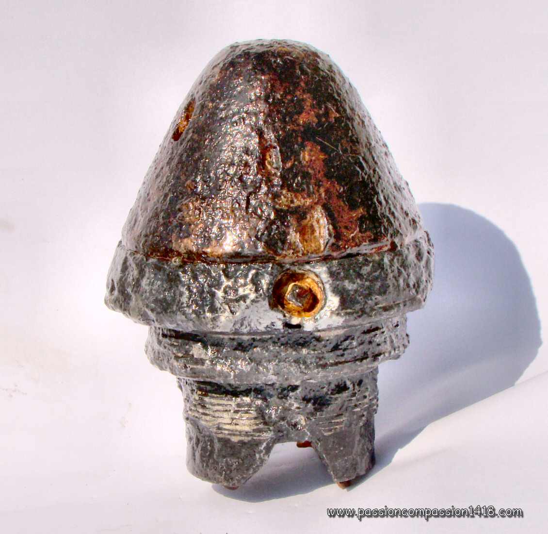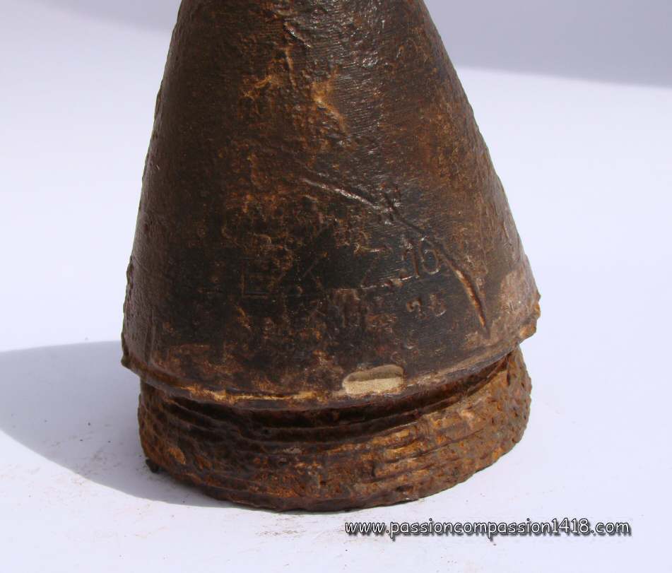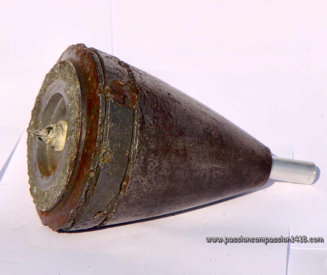 fuze GrZ 92. Nice specimen observed in the Somme. Markings are still well visible : (Gr Z 92 - RM 16 - 140) |
