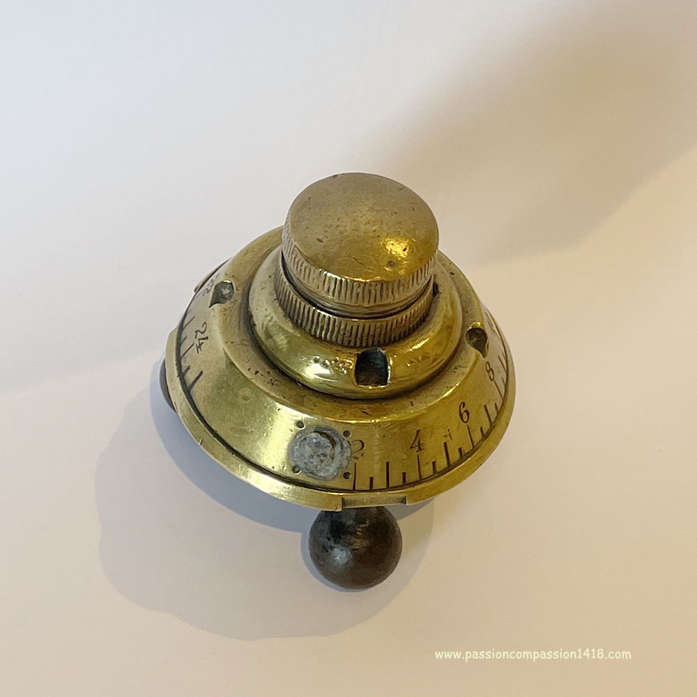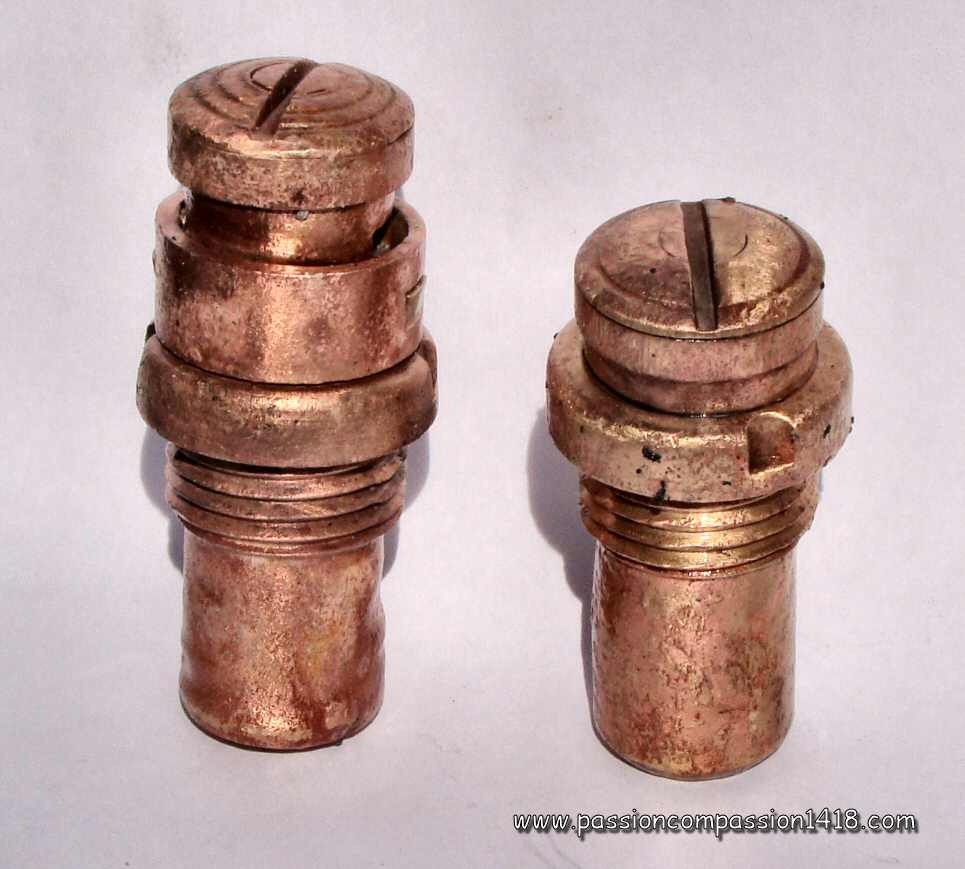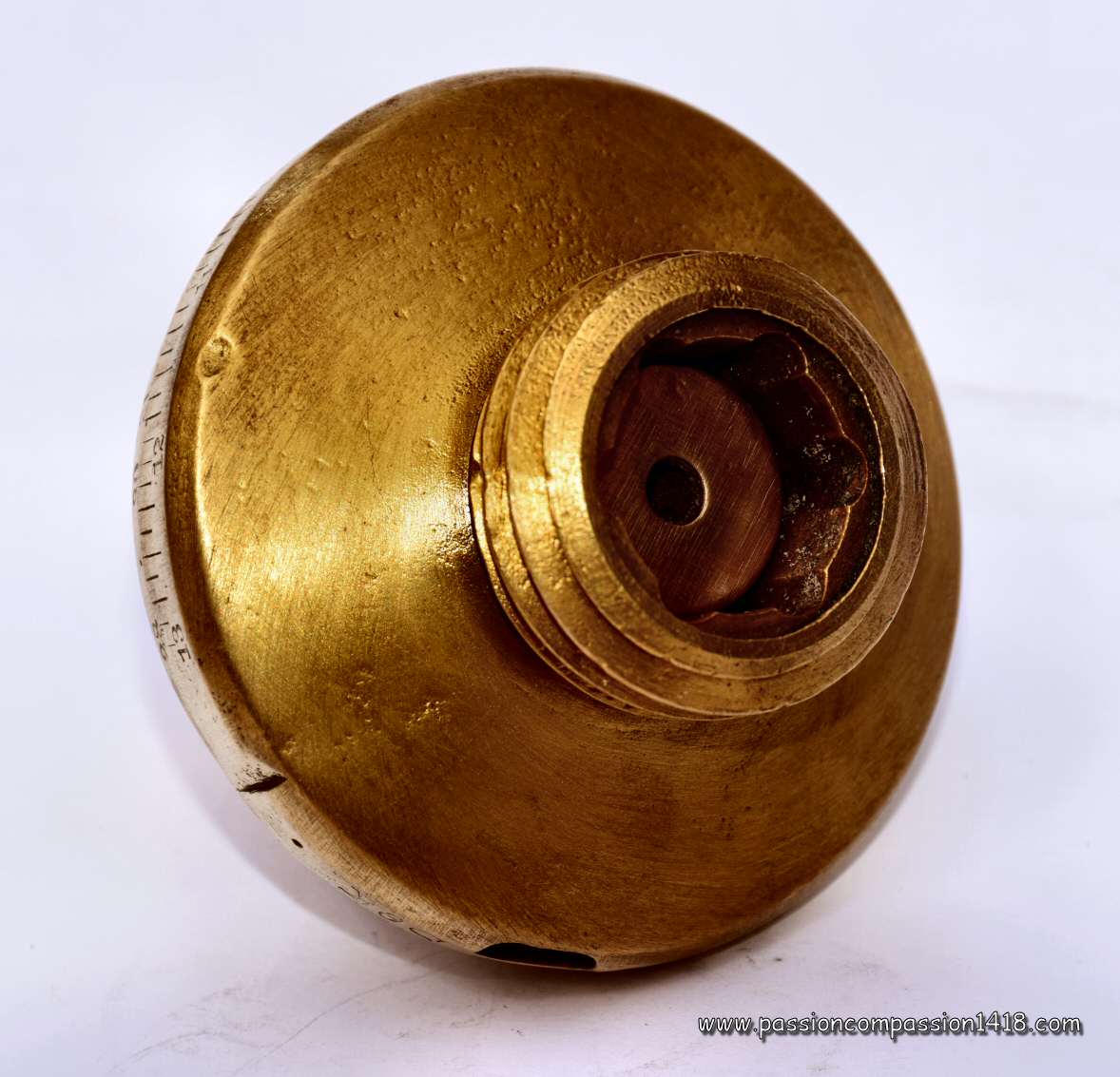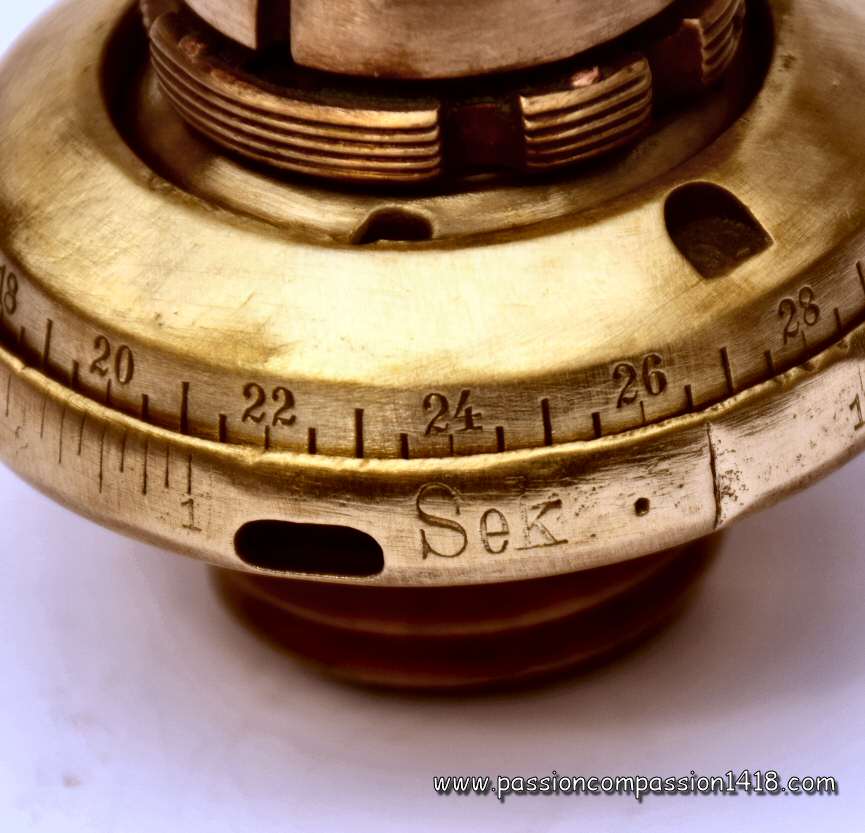 Entirely made of brass, this fuze had two percussion systems aligned vertically in the same central axial channel : From the fuze tail to the fuze base, this pyrotechnic column was composed of