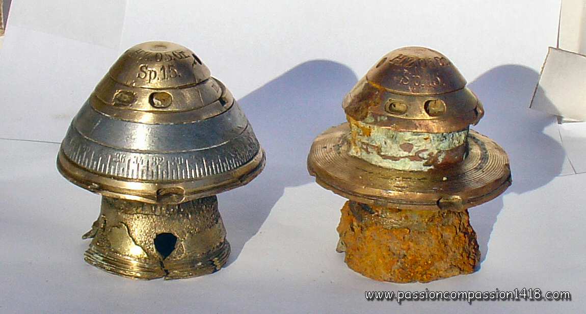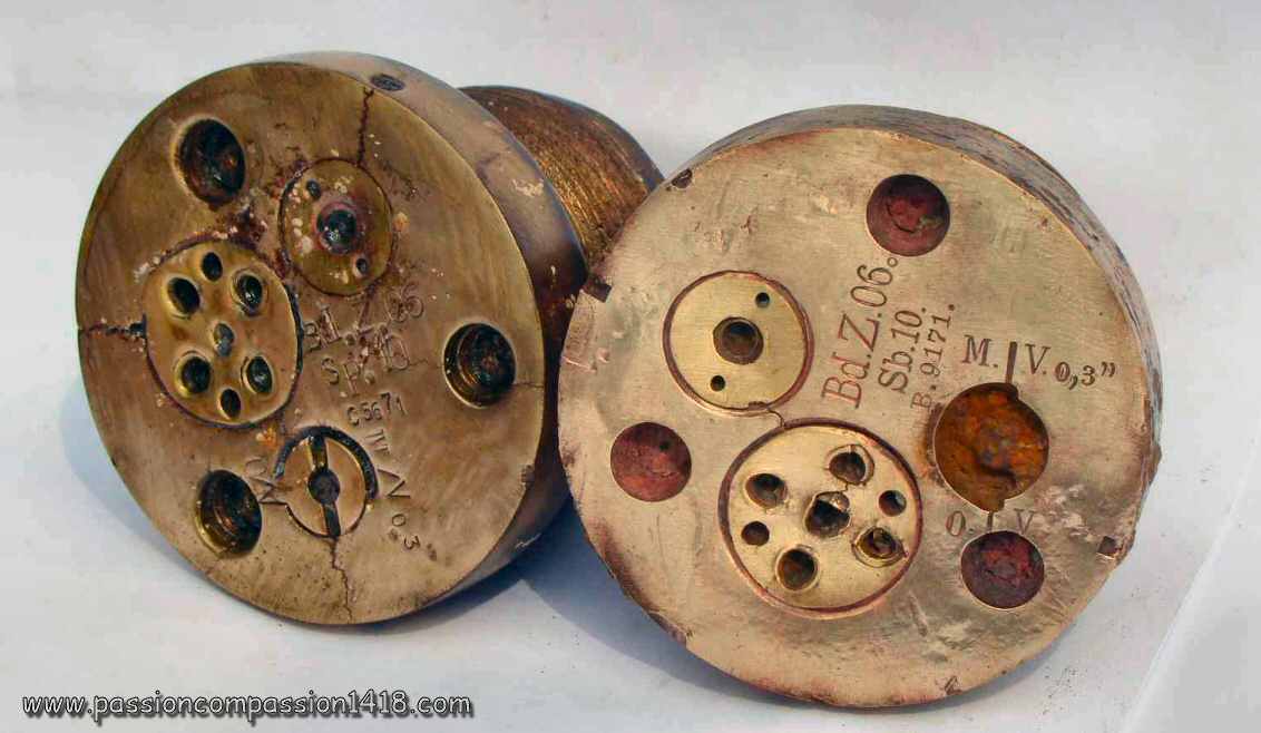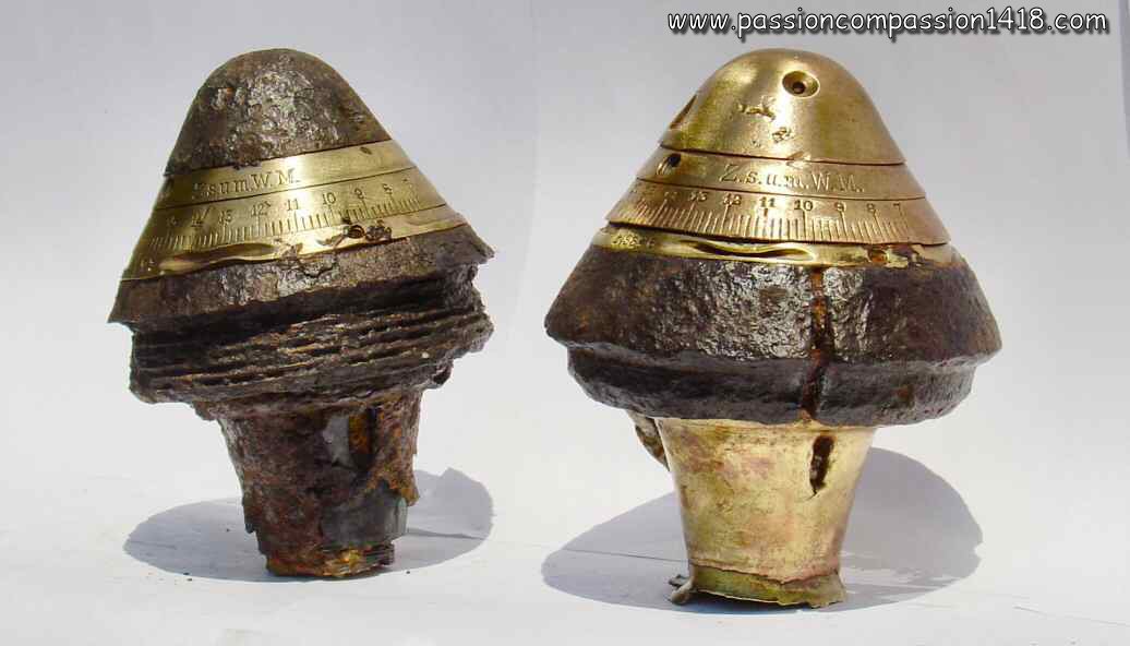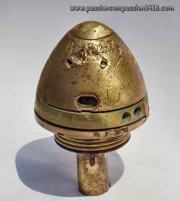 the lack of metals caused by the blocus of Germany soon induced the replacement of bronze or brass with aluminium or zinc alloys, or steel. Since those materials have lesser resistance to corrosion, those types of German fuzes that you can observe nowadays on the former battlefields are sometimes in a bad condition.