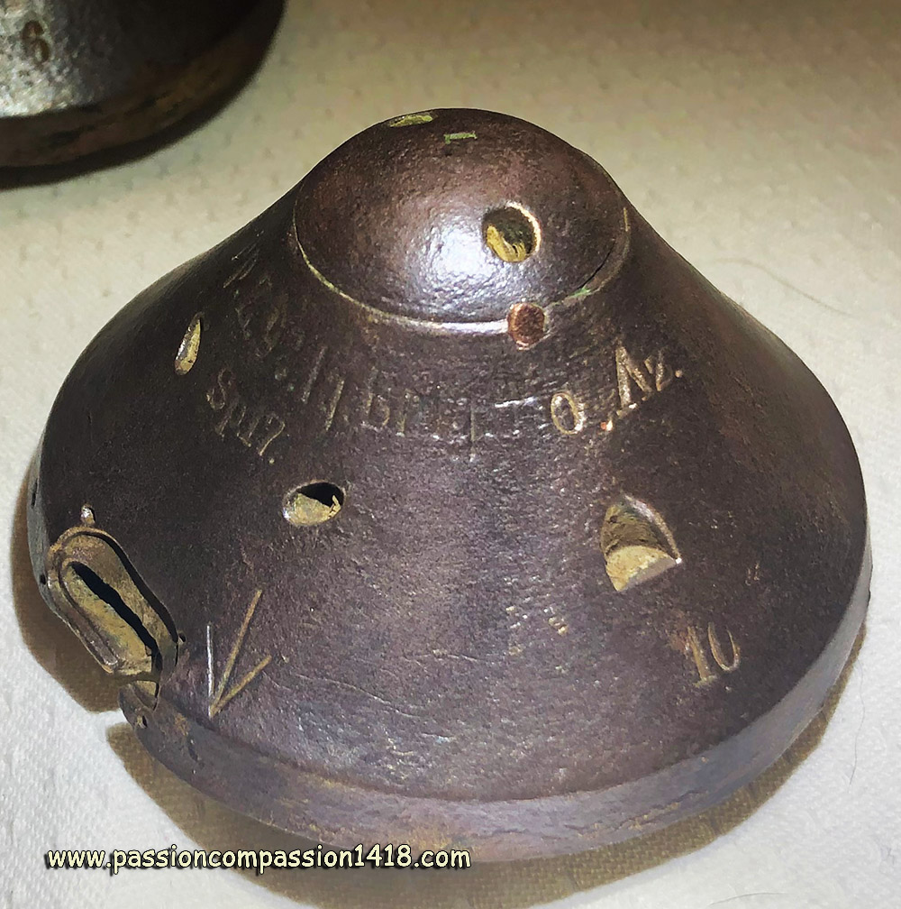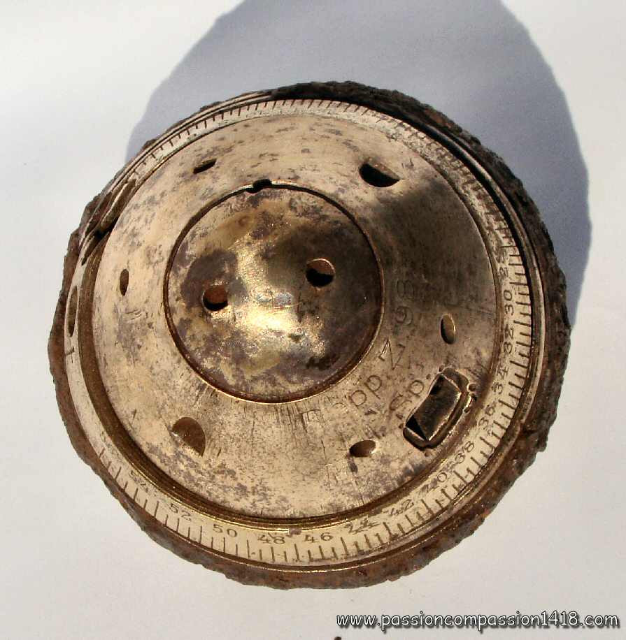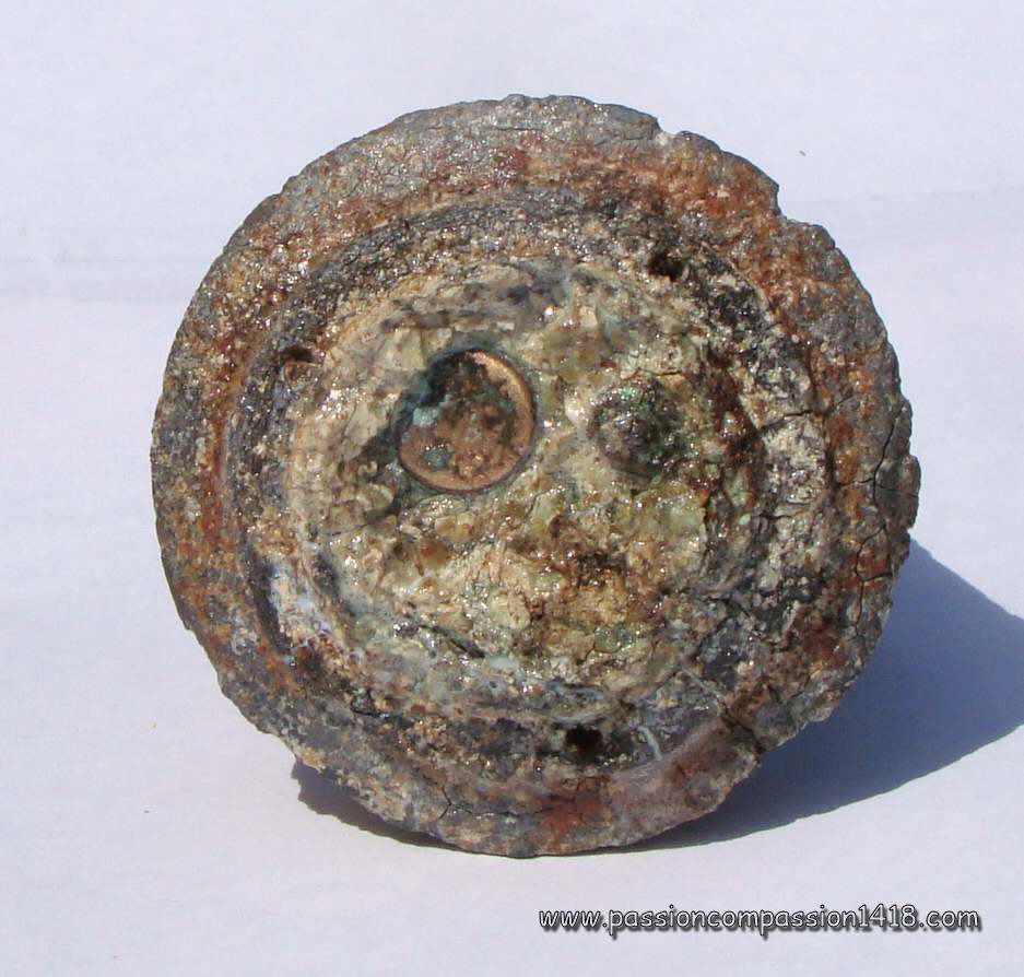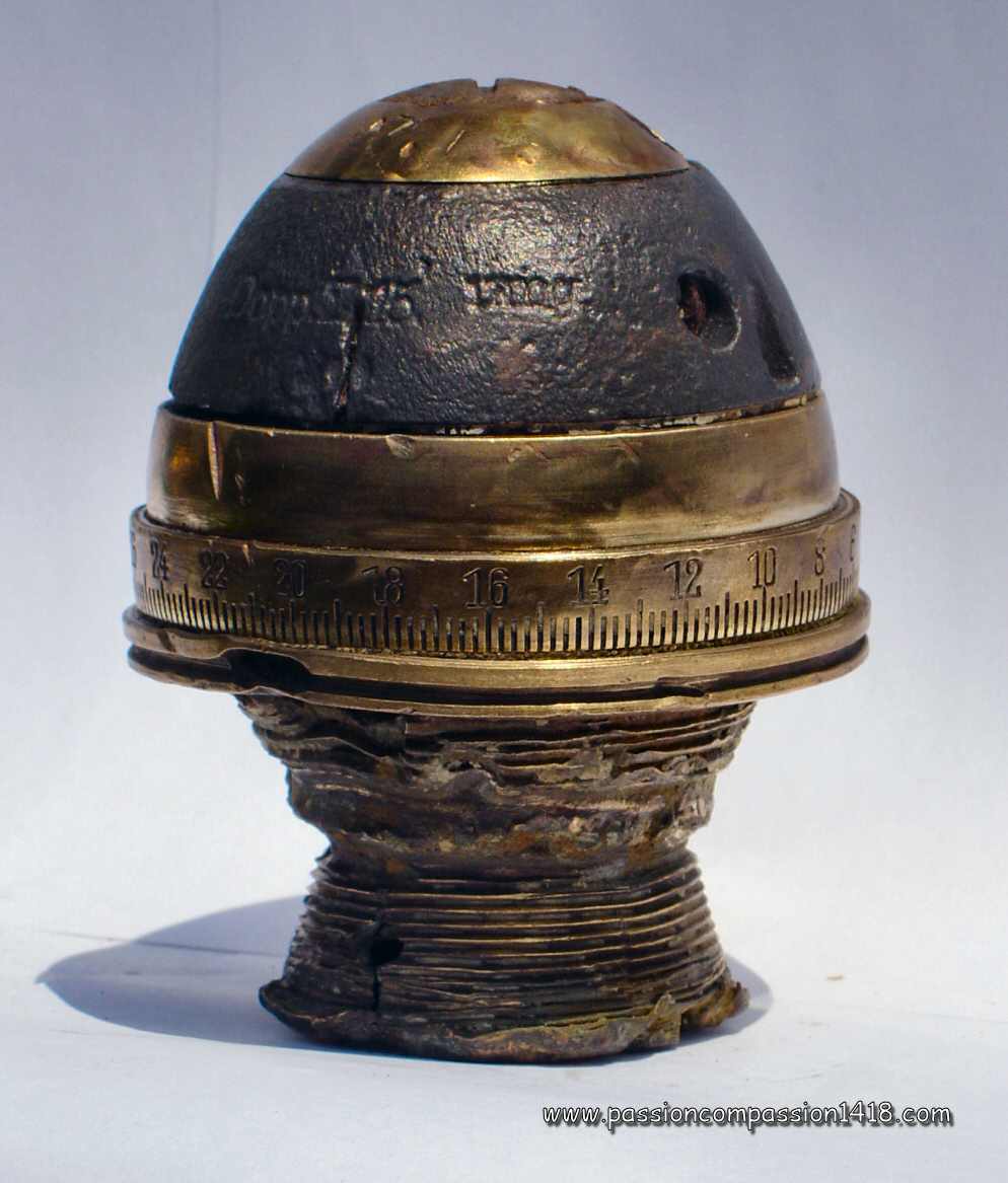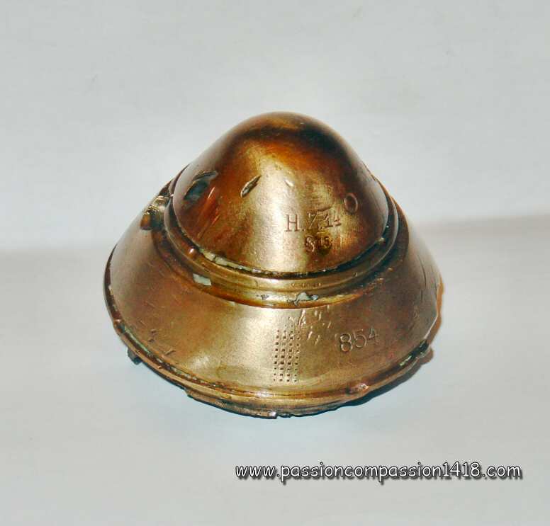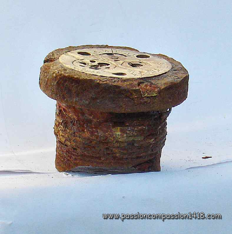 Top view of fuze GrZ 96/04 observed in Champagne. Markings 'Sb 10 - O 8979', manufactured in Strasburg in 1910. |