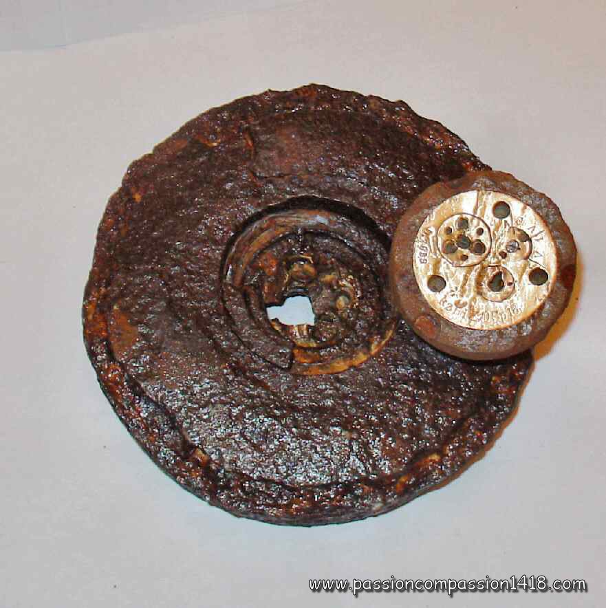 fuze BdZ10 Sp16. Detail of the complex inner mechanism, destroyed by the explosion. |