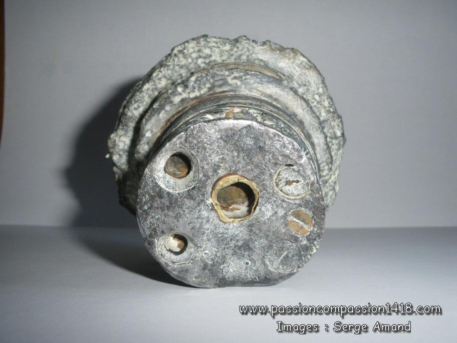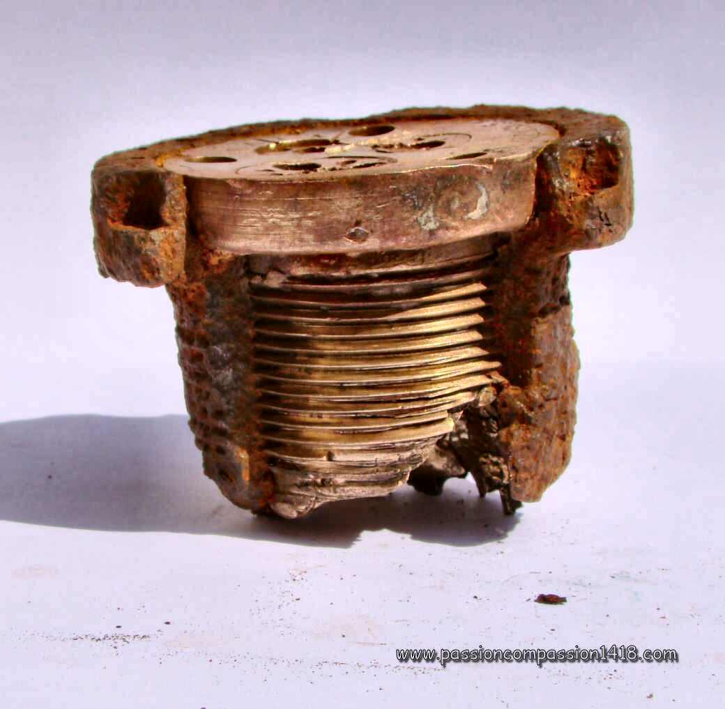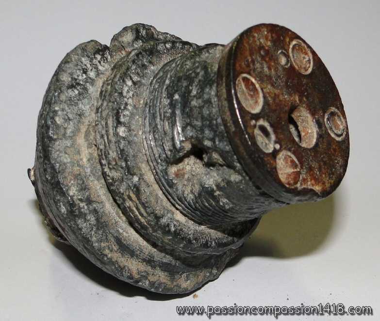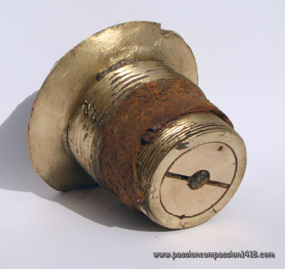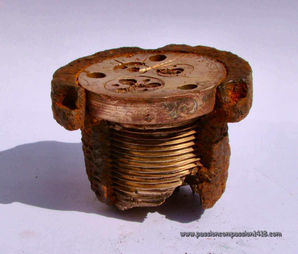 KZ 14 fuze.. Particularly slightly corroded piece in zinc alloy and steel. marking '513' on the zinc alloy body |