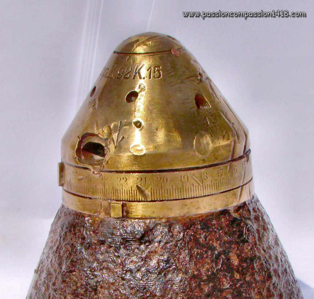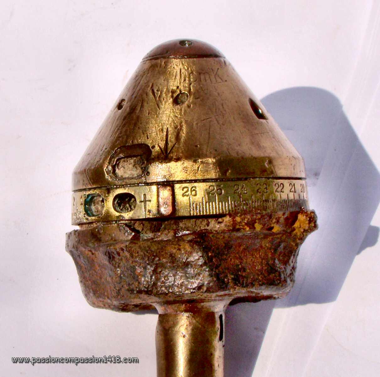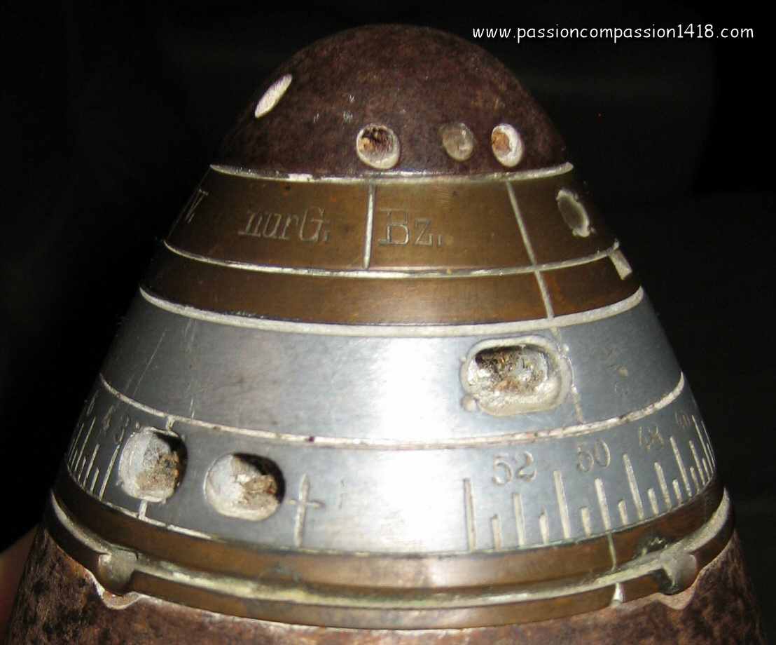 fuze Kz Gr Z 14. This one observed in Champagne is in pretty good condition; Markings : 'Kz Gr Z 14 - 73 TKD 15 (star)' |