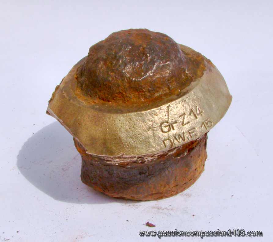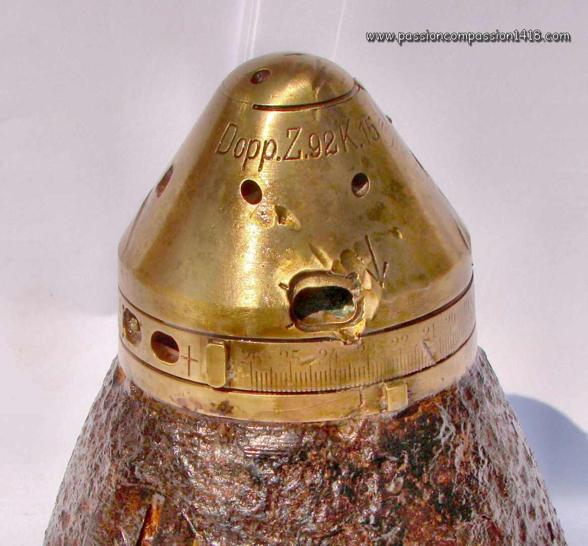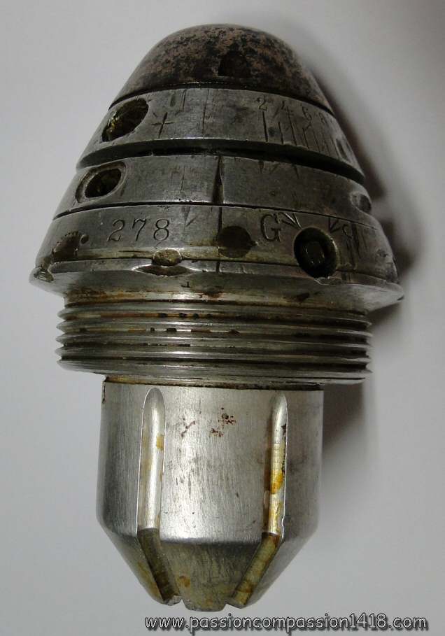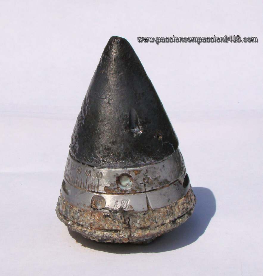 fuze Kz Gr Z 14. This one observed in Champagne is in pretty good condition; Markings : 'Kz Gr Z 14 - 73 TKD 15 (star)' |