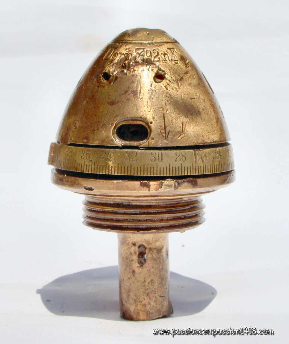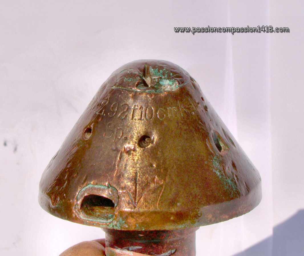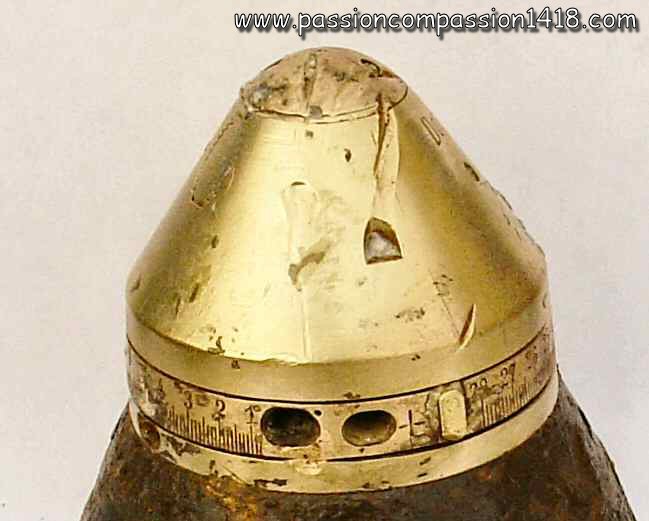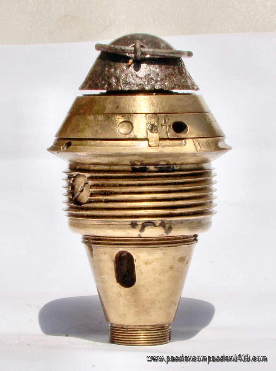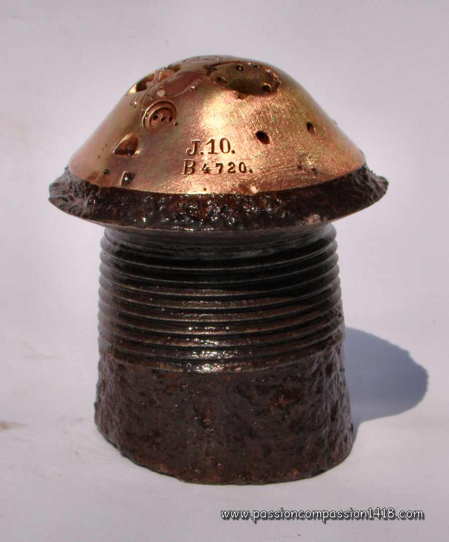 GrZ 96/04 fuze. Characteristic shape, with its top in one single brass mass. Markings 'J 10 - B 4720'. |