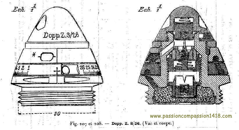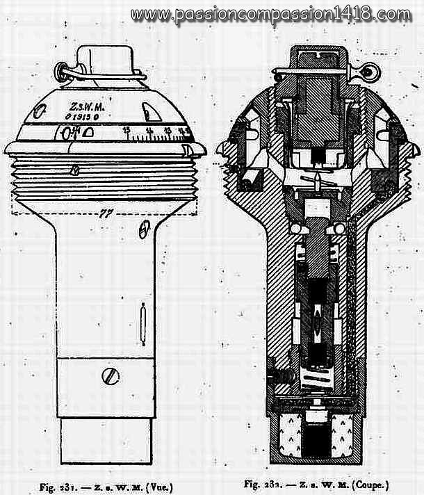 fuze ZsWM. Markings 'Z.s.W.M. - (losange in circle) - 1913 - (losange in circle)' |