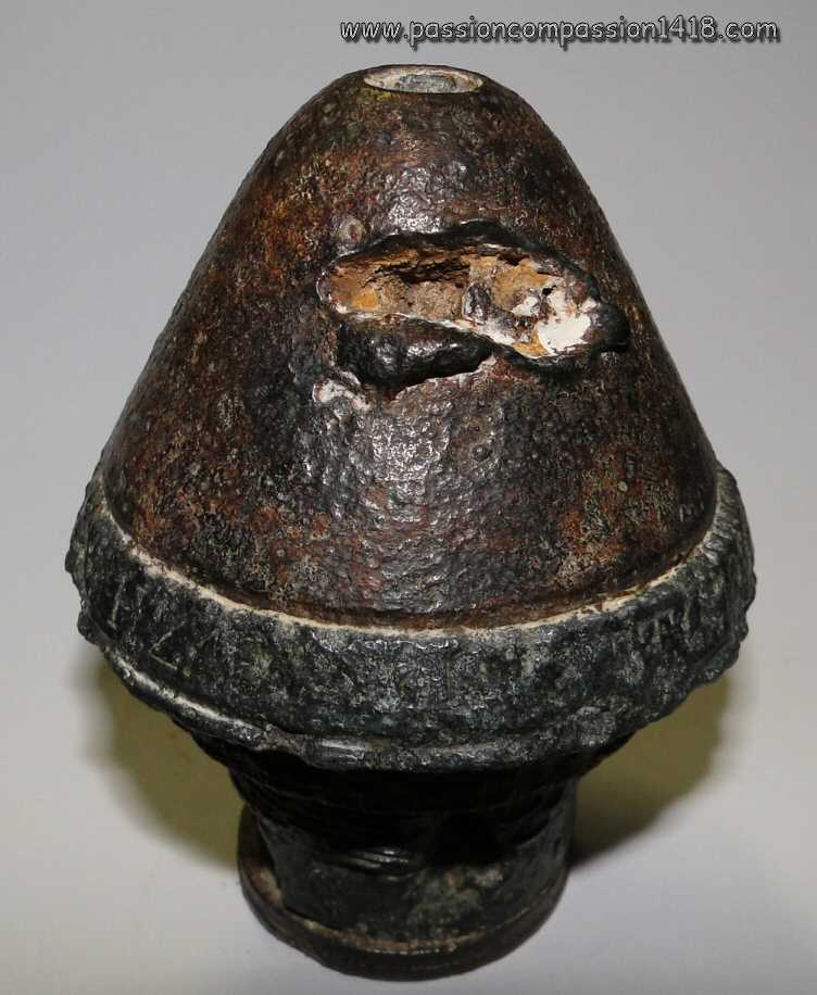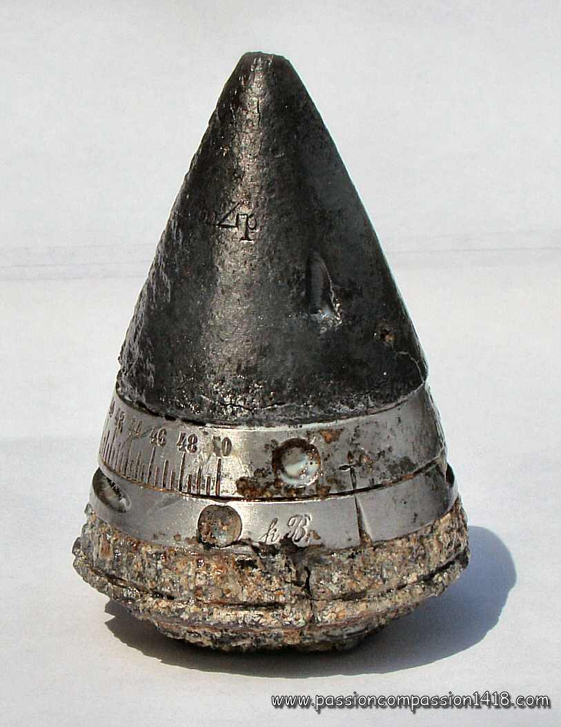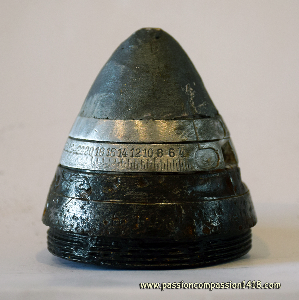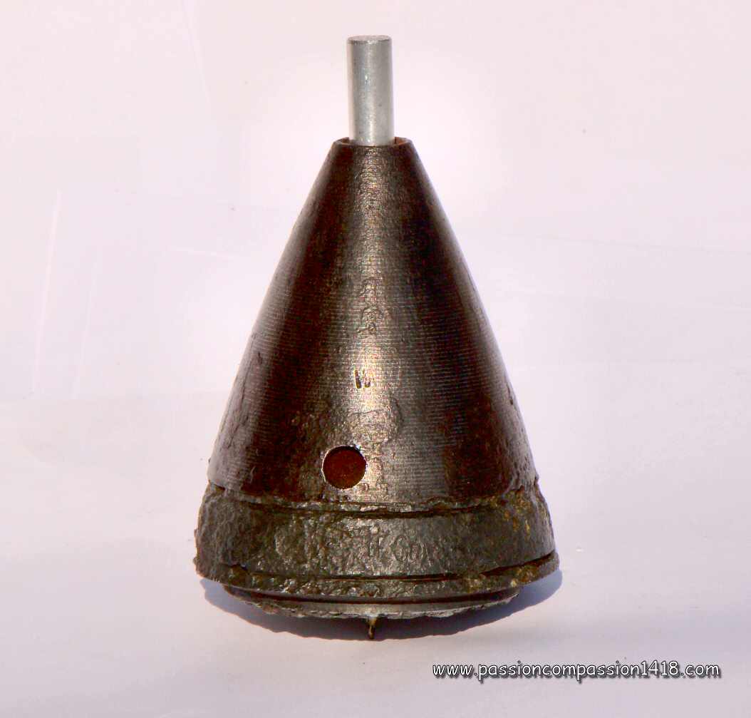 Fuze Gr Z 14 n/A. Mounted on an approximative 110 mm calibre shell head. Observed in Verdun. |