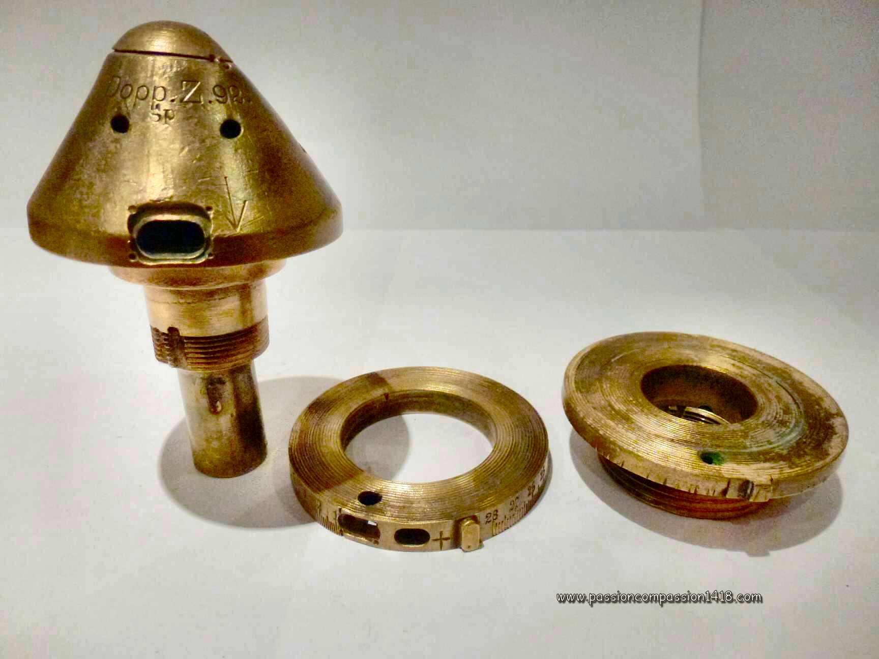 fusée IWMZdr2. When removed and turned upside-down, one can see the shape inside that can be iserted and locked inside thehousing at the top of the fuze |