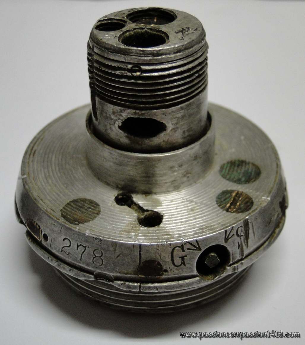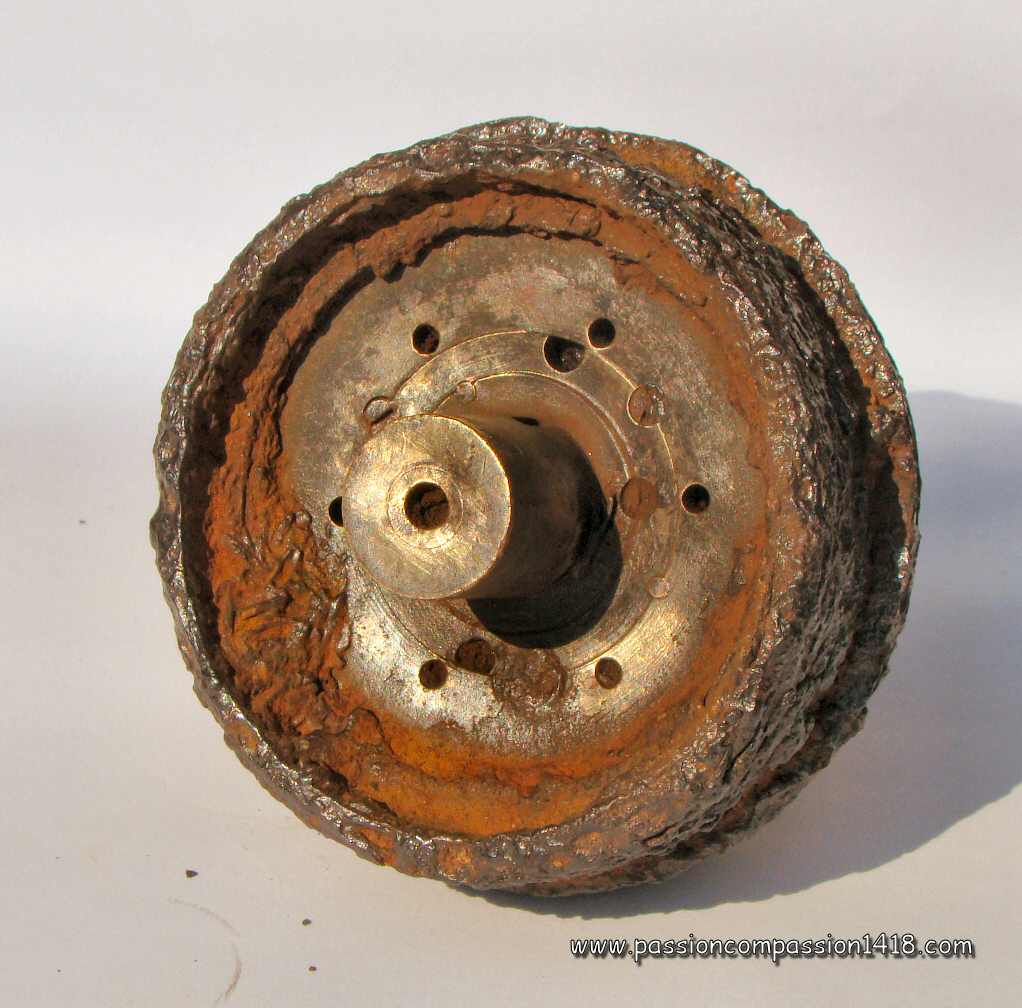 fuze Gr Z 04/14. All markings have disappeared on this specimen, but it is clearly a mod14 model, since no detonator security stem is visible on the bottom (compare with the pictures above) |