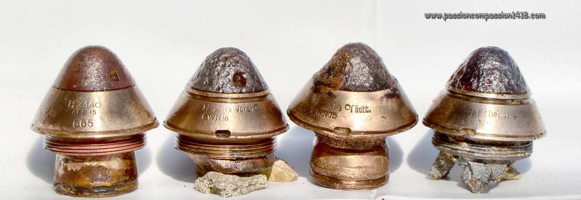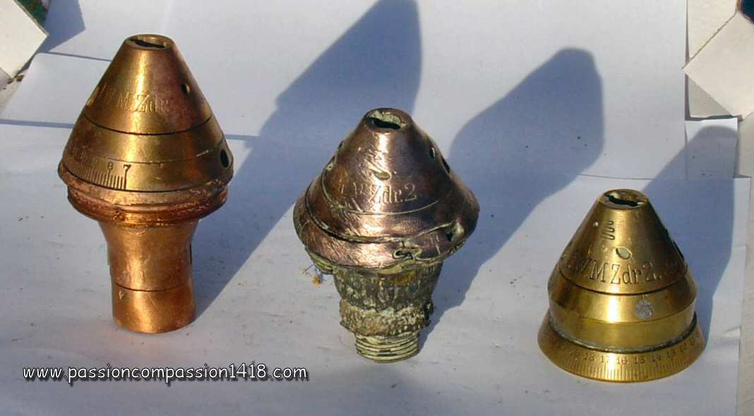 KZ 14 fuze.. Several types of KZ14 fuzes, made in different material, commonly found on all the western front former battlefields |