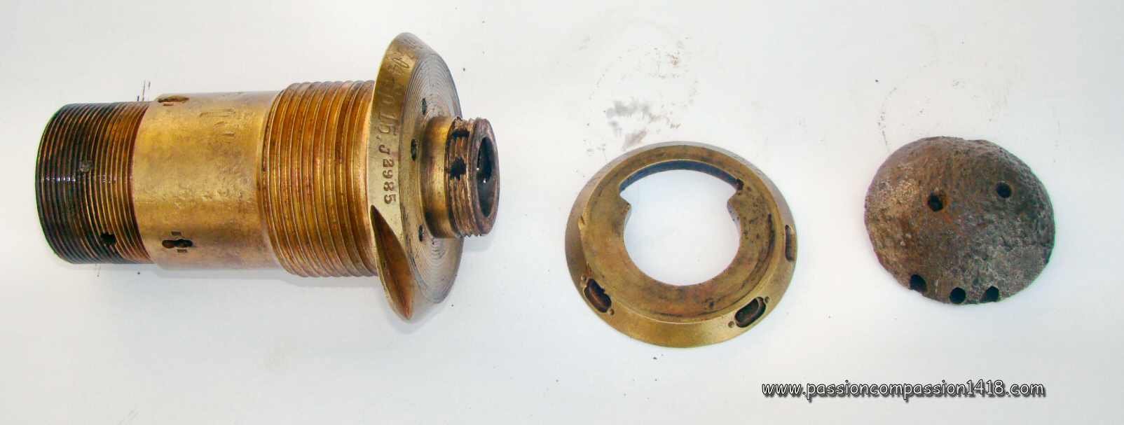 fuze ZsWM. The lower fixed disc, with the thread, has disappeared during the mine explosion |