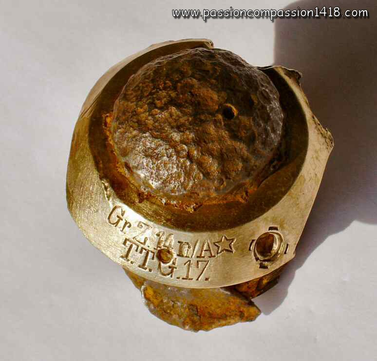 fuze Gr Z 14 n/A. Another piece badly damaged, but with clearly visible markings : 'Gr Z 14 n/A (star) - T.T.G.17' |