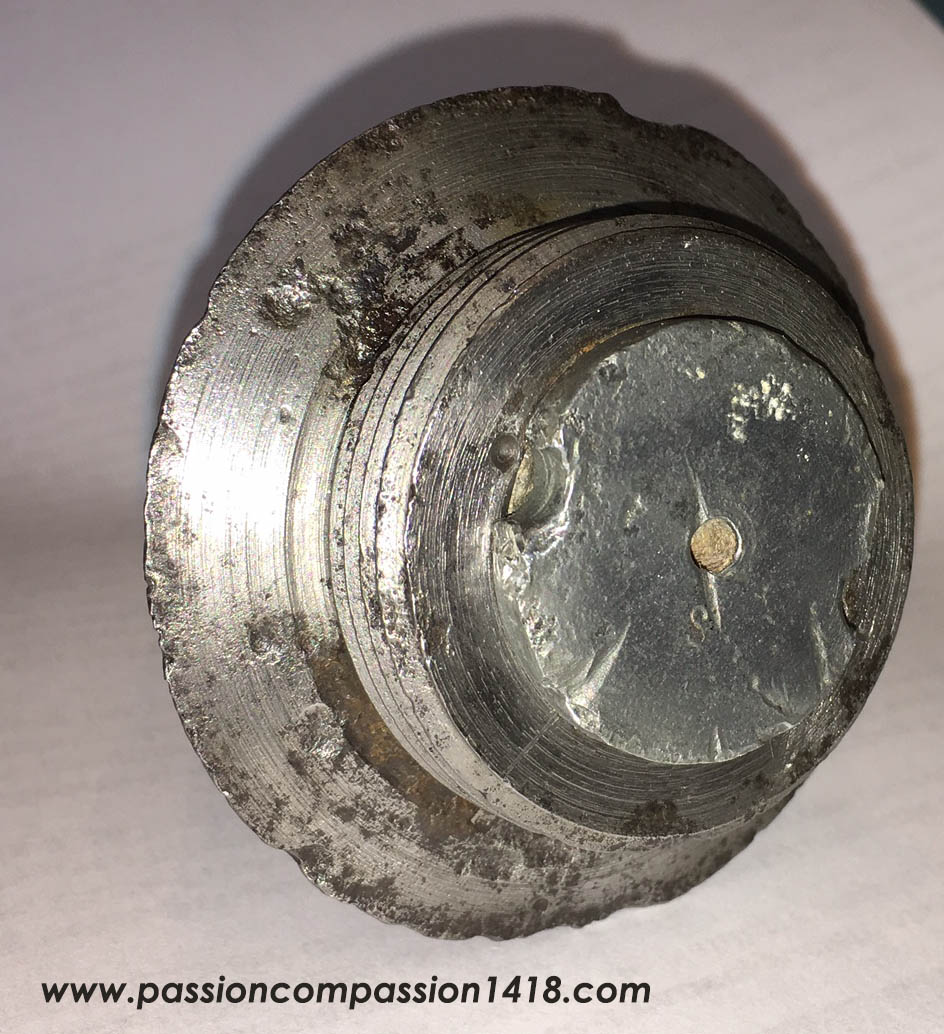 Fuze for fin-tailed sFlMW bomb. Top view with the top plug bearing the percussion pin inside. |