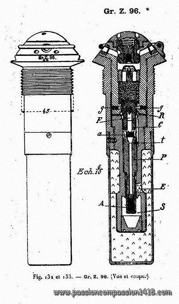 The Gr Z 04 fuze was intensively used. It was mounted on the high explosive shells, false head high explosive shells, smoke and gaz shells of the :