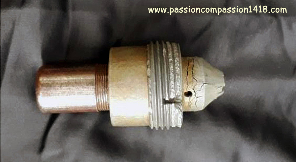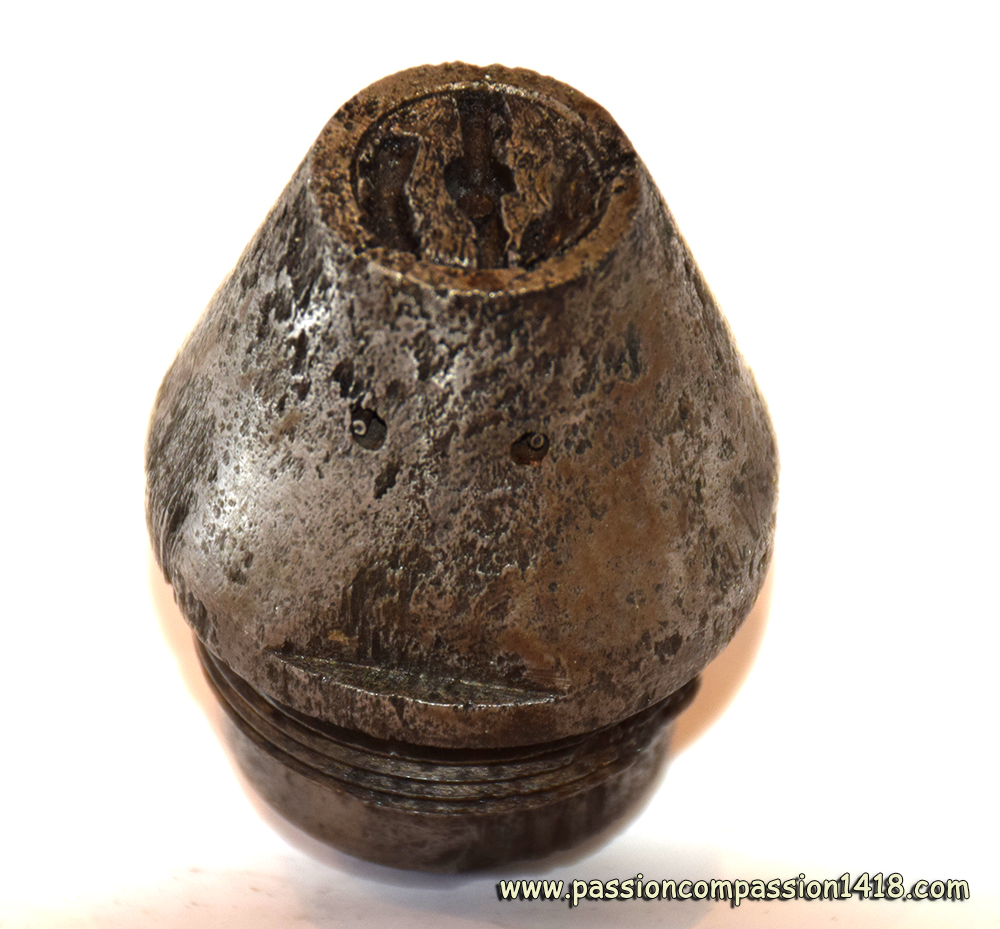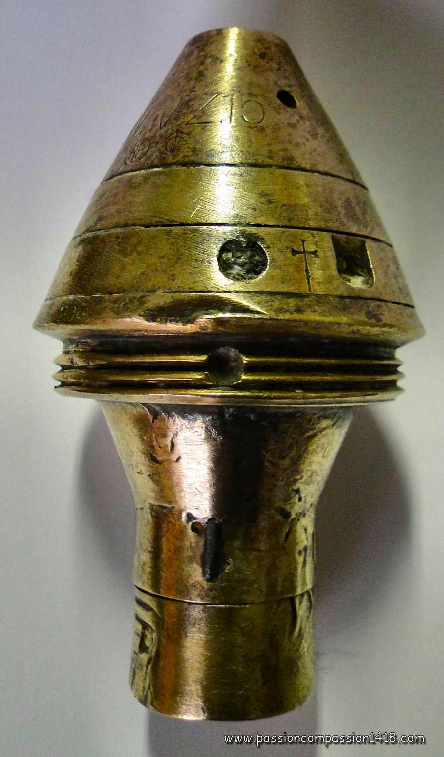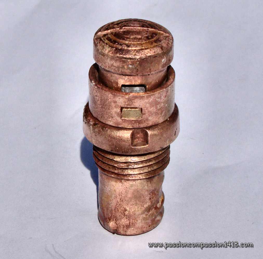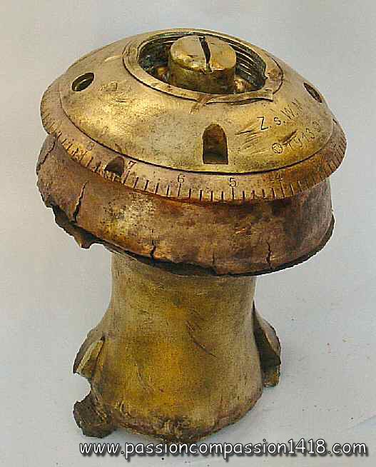 KZ 14 n/A fuze. A cross has been engraved on the top of the cap, indicating this is a modified fuze (hermetic bottom) for the use with gas shells |