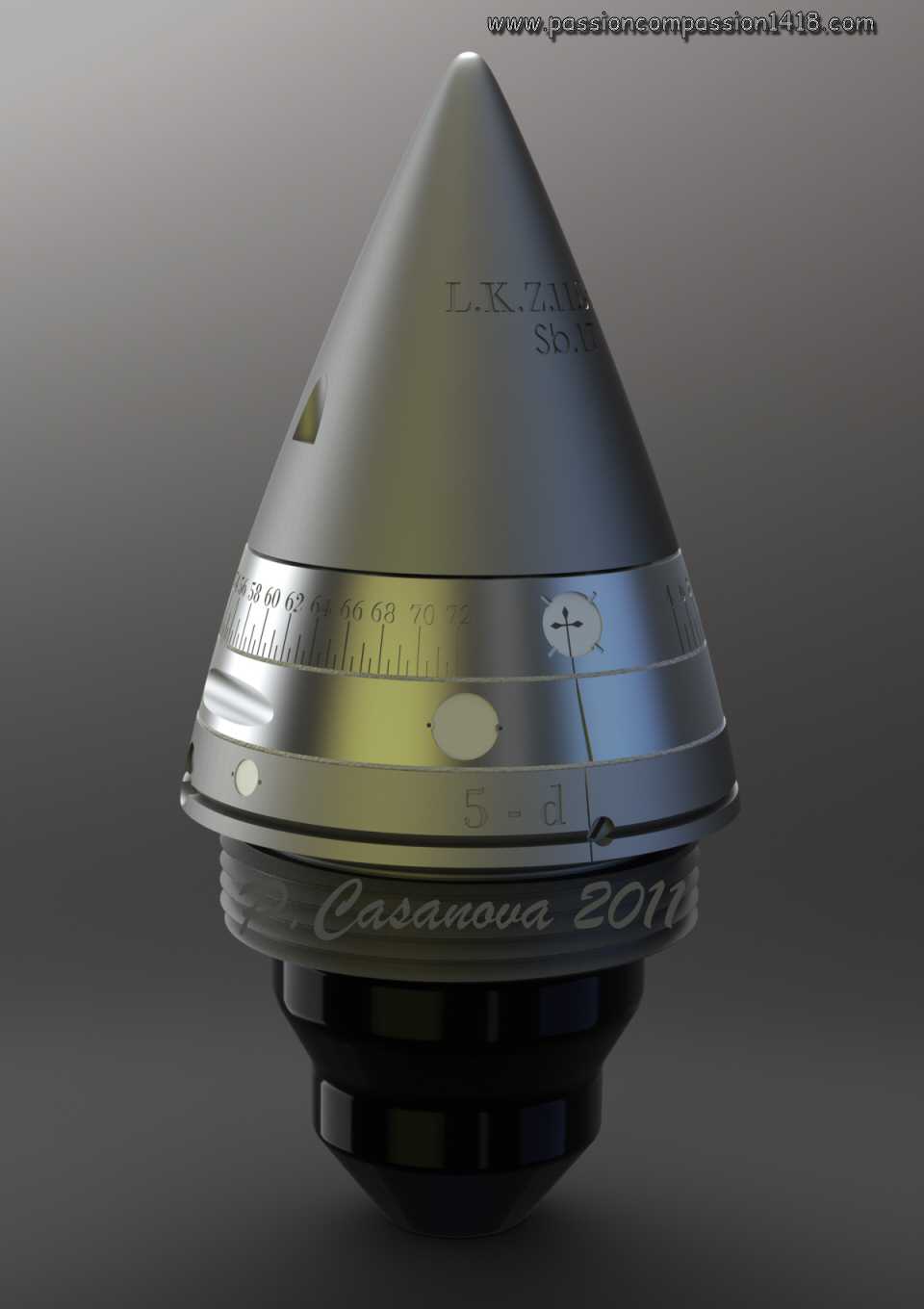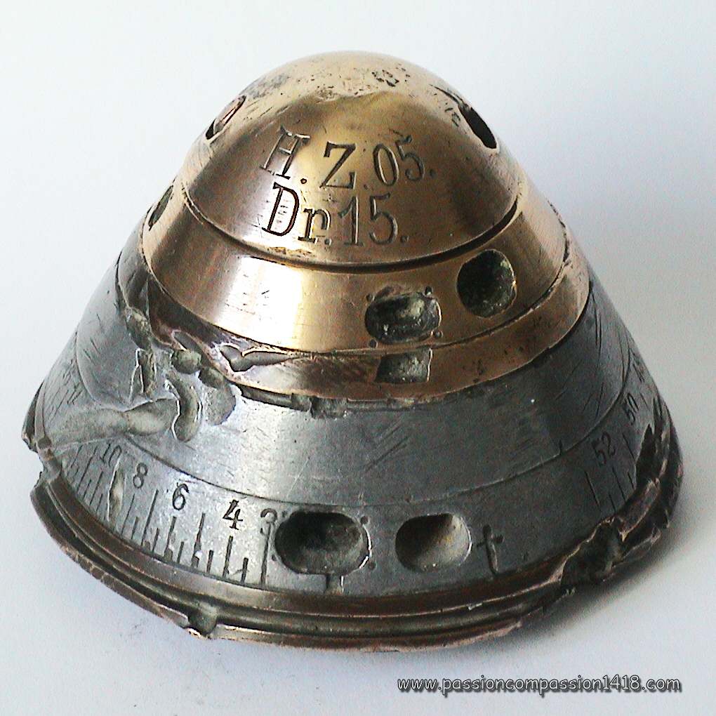 Fuze ZsumWM. See the different holes, and the graduations with the roman cross for a percussion function. |