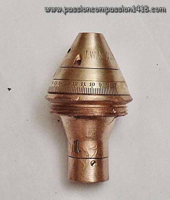 Fuze ZmWM. Those earlier fuze were dedicated to the middle size minenwerfer. Markings 'Z.m.W.M. - AEG 1915 - F1639' |