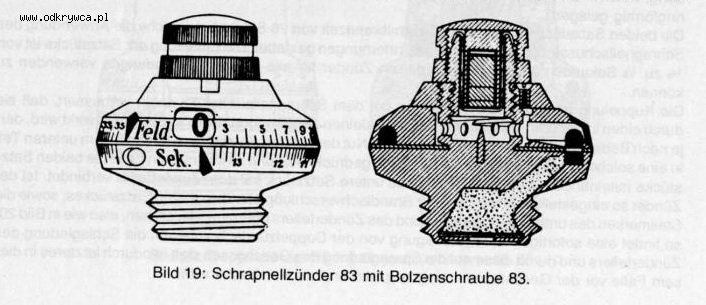 A variant named Gr Z c/82 (Kp) was equipped with a safety spring and a different inertia block. Externally, it was only distinguishable by the presence of a steel cap covering the fuze head. These fuzes percussion systems were also used for the first German time and percussion fuzes Dopp Z c/85 whose percussion and concussion removable mechanism named DoppZdSchr c/85 ('DoppelzünderSchraube') was inserted into the time system (revolving discs) just before the shell firing. |