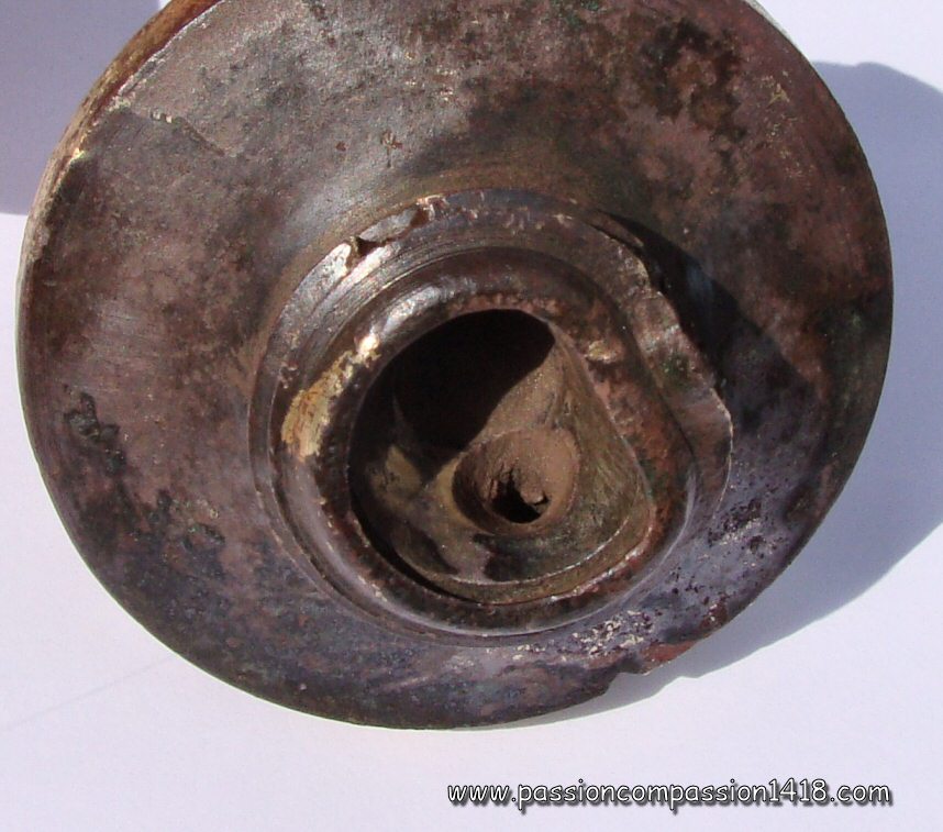 fuze IWMZdr. View from below showing the window communicating the flame to the detonator (missing) |