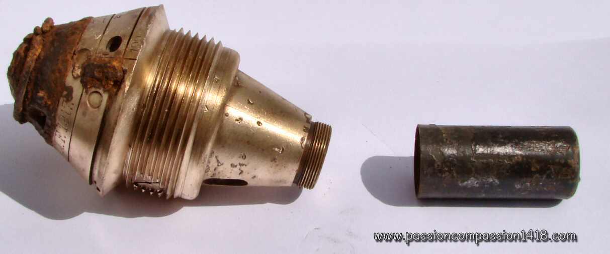 fuze BdZ10 Sp16. Bits still present on a 210 mm shell bottom observed in Verdun |