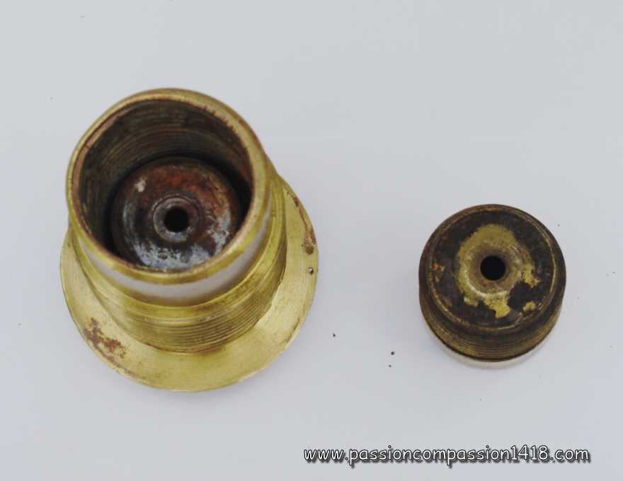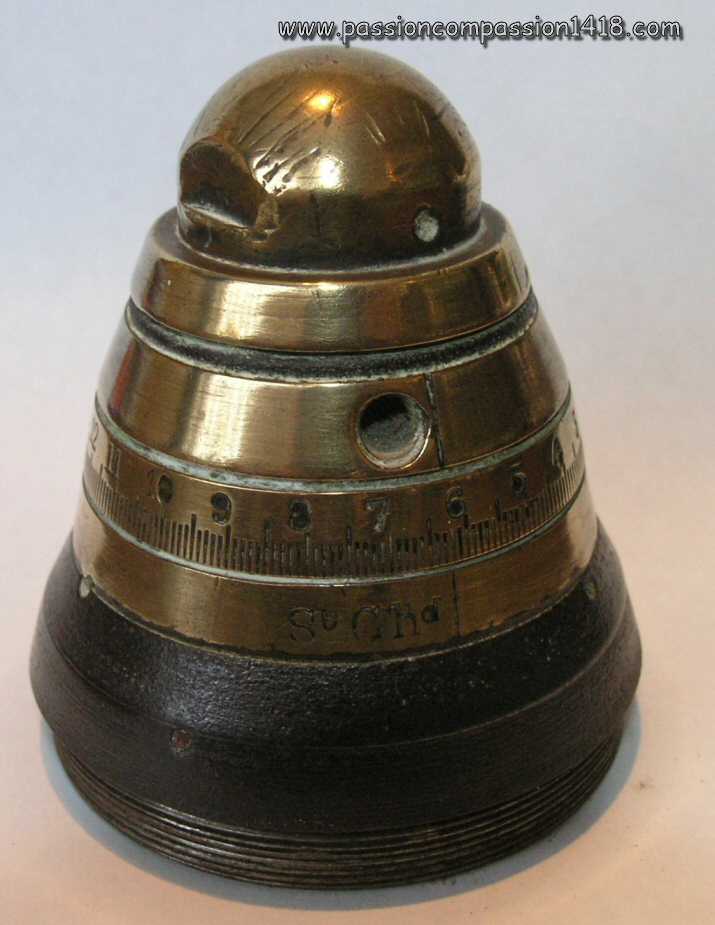 | Saint Chamond fuze. Markings 'St Chd'. Pictures courtesy Luc Malchair | Saint Chamond fuze. Graduations up to 18. Pictures courtesy Luc Malchair | |