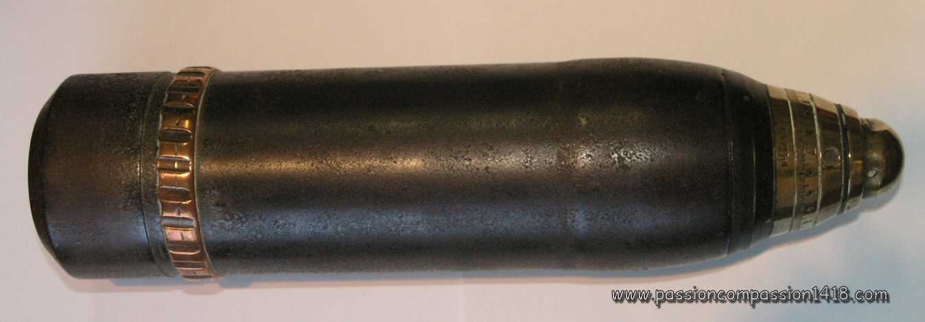 |  | Brass fuze, graduated from 2 to 55 hundreds of meter with 50 meters steps, with 51 mm screw thread. Designed and built at the Belgian Pyrotecnics School before 1914 ("EP" markings sometimes visble - not on the model shown), it was clearly inherited from the German time and percussion systems. It could be made out of brass or aluminium. That fuse equipped the :