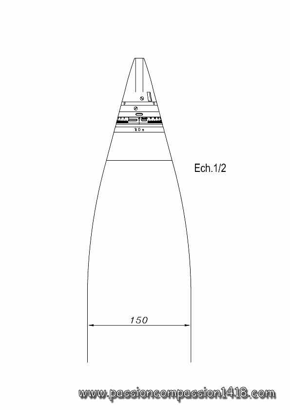 "Fusée conique Tchèque, Schéma moderne sur ogive de 150 mm, par JL Decherit |
