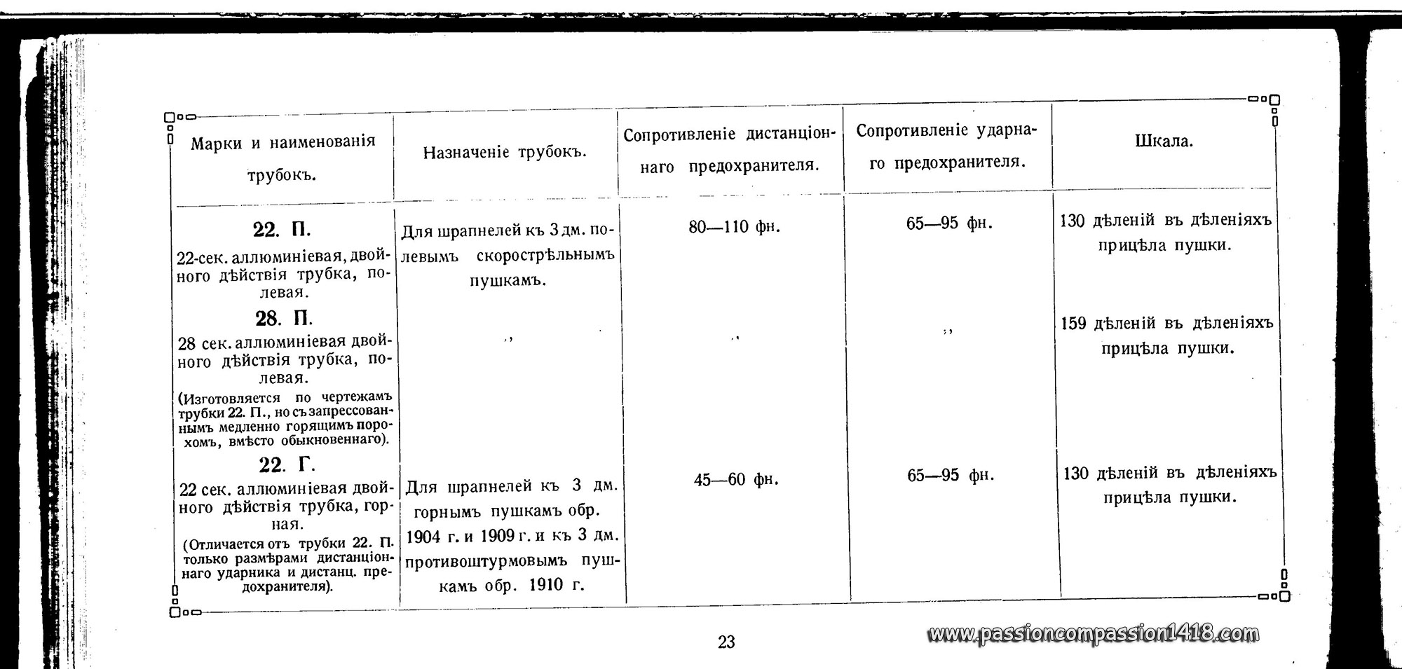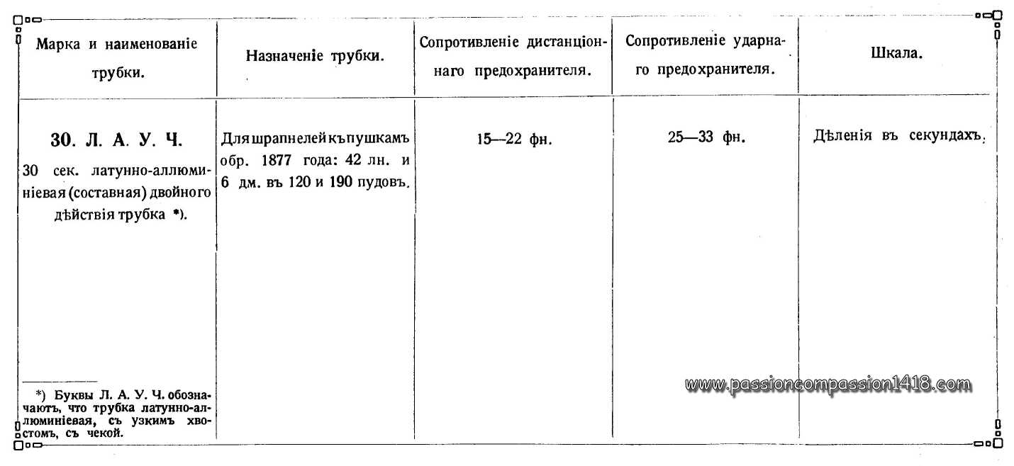 Cette fusée à double effet de 30 secondes existait sous deux versions : la version 'P' était dédiée aux canons de campagne ('p' pour 'polevaya' - campagne - en russe), et la version 'G' aux canons de montagne ('g' pour 'gornaya' - montagne). C'était la fusée à double effet usuelle pour les obus des canons de 3 pouces de différents types :