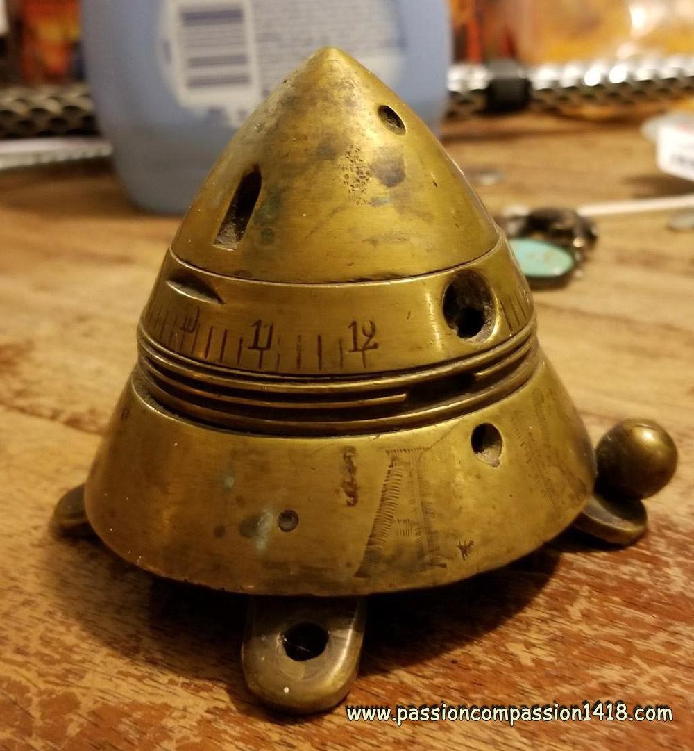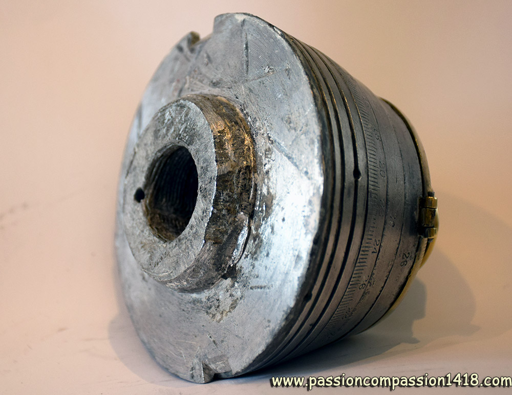 Fusée à double effet de 22 secondes en aluminium', les deux disques rotatifs ainsi que le corps et la base étaient tous en aluminium mais sa coiffe supérieure était réalisée en laiton.