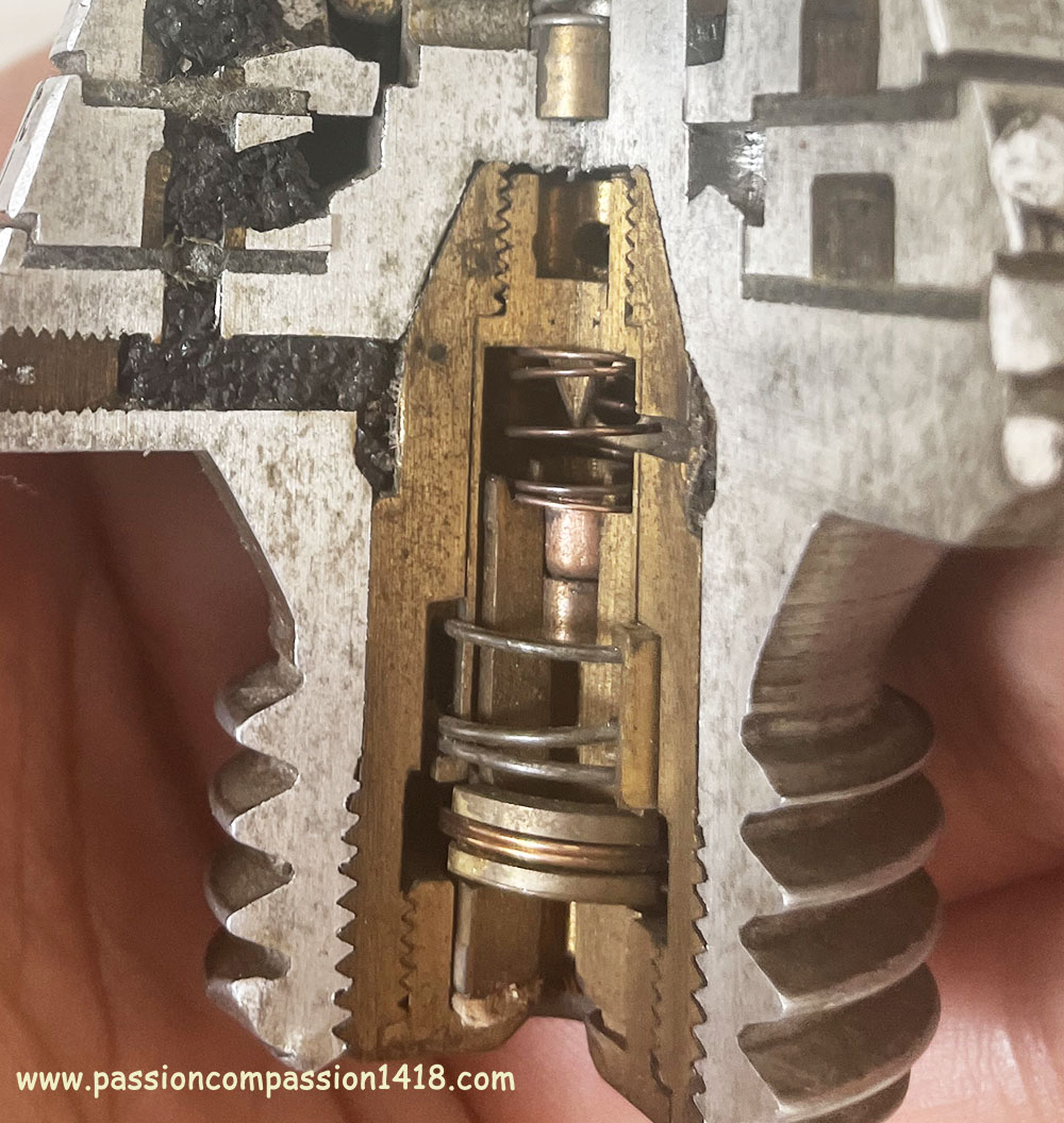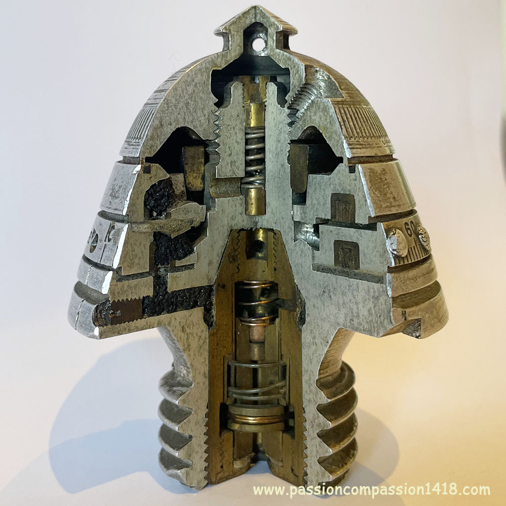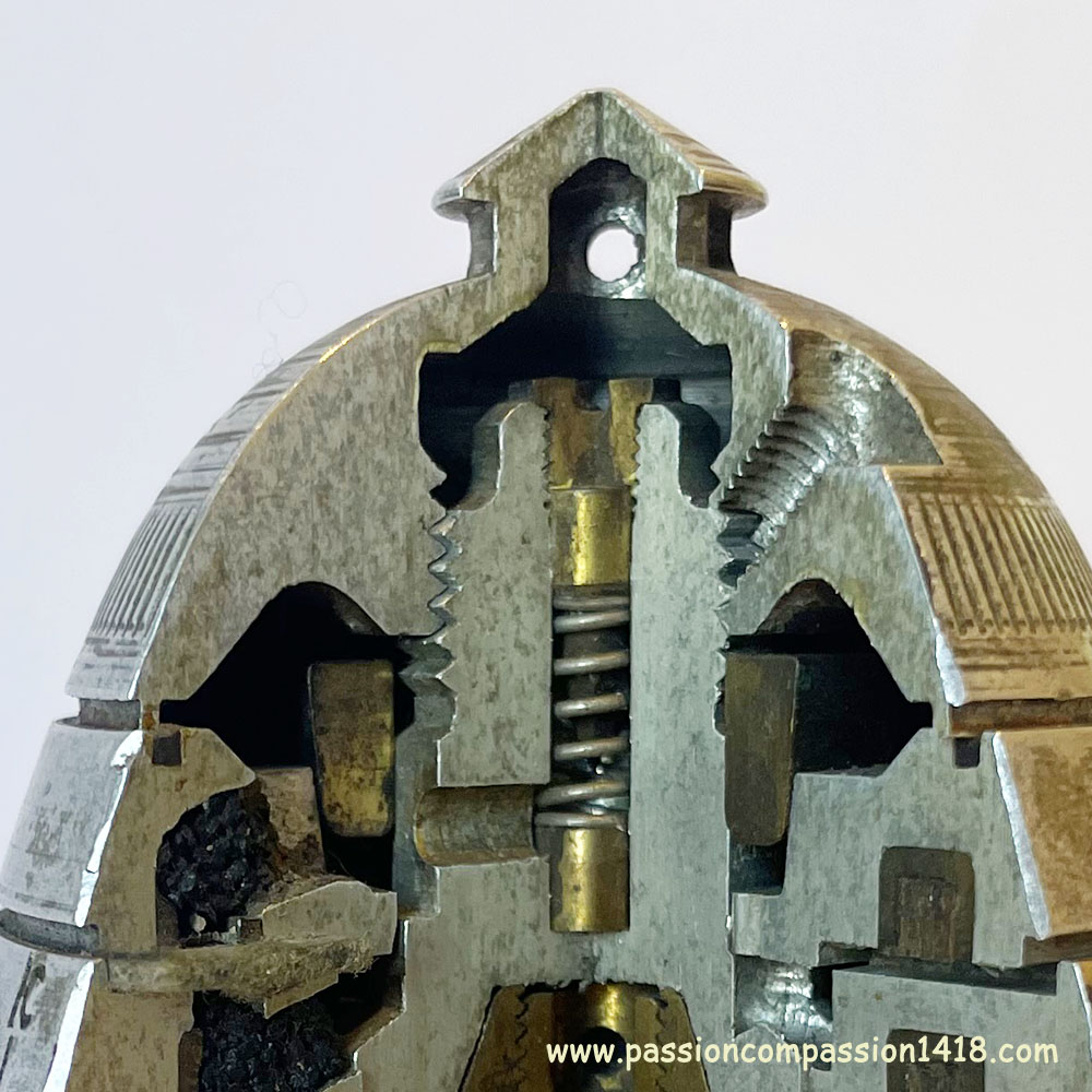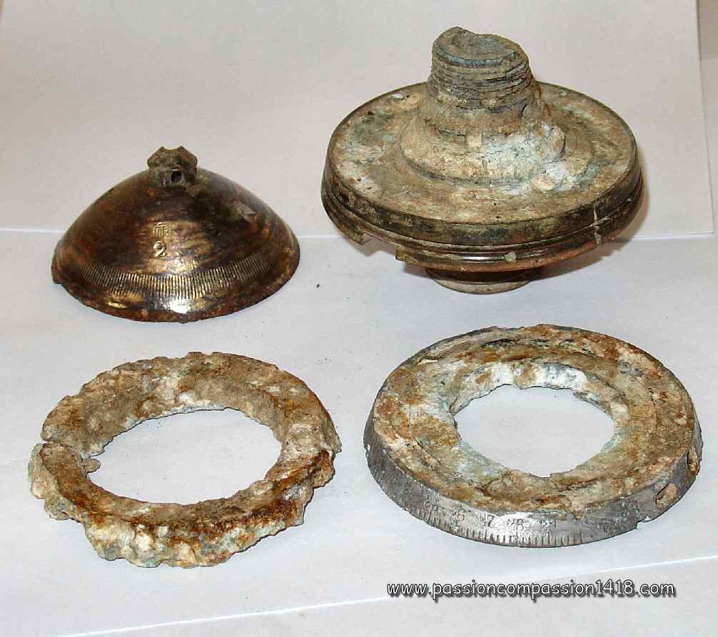 Les Schémas d'époque montrent que les trous situés sous le 'chapeau chinois' servaient également d'échappement pour les gaz de combustion des systèmes concutants et fusants.