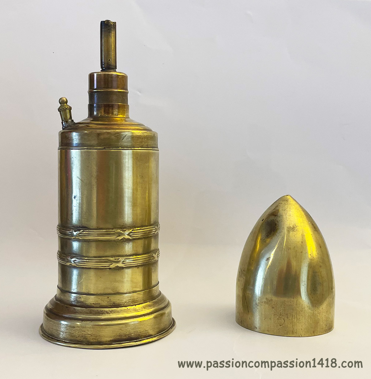 Ce presse-papier est fabriqué sur base d'une fusée turque à double effet pour canon de 75mm M 1903 de fabrication allemande.