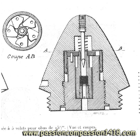 The war experience also induced the fighting armies from each side to feel the need for a percussion fuze that would act so quickly that it would trigger the explosion of the shell before the warhead really entered into the ground or the target. This is how superquick fuzes were invented and mounted on HE shells for anti-personnal, barbed wires destruction or gaz spreading missions.