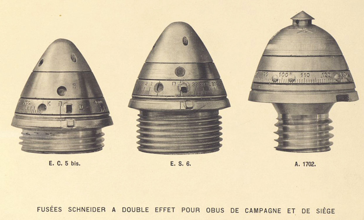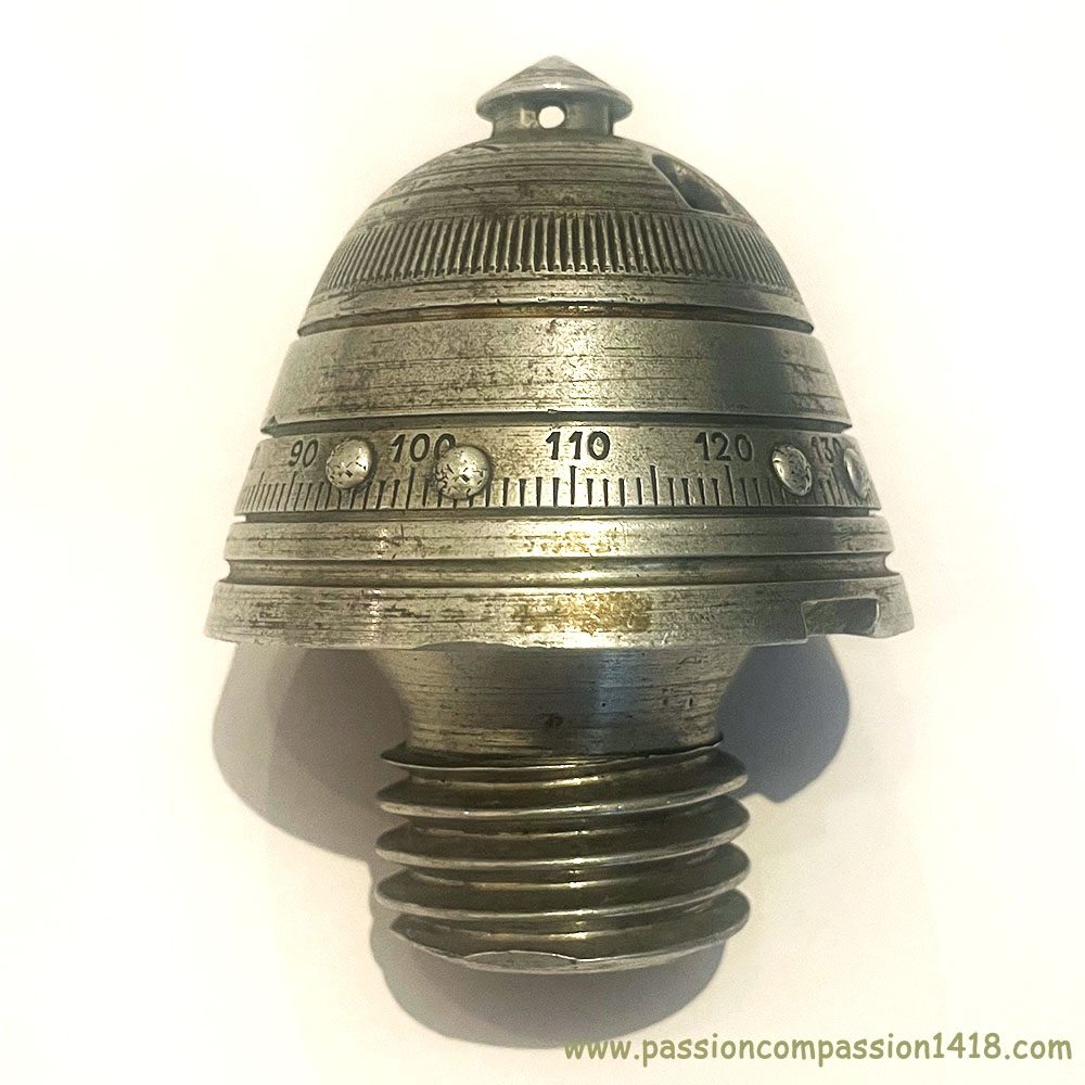 Sous le 'chapeau chinois' en tête de fusée était abrité le système inertiel concutant, très classiquement fait d'un bloc mobile porte-amorce et d'un rugueux fixe seulement séparés par un ressort de sécurité et une feuille de métal mou. Ce système permettait d'allumer la piste de poudre compressée du dispositif temporisé, au départ du coup. Les pistes circulaires étaient situées dans les deux disques, celui du haut étant fixe et celui du bas mobile. Le disque mobile était gradué de 0 à 140 unités de distance (valeur inconnue) par pas de 1 unité, mais il pouvait aussi être positionné sur une marque 'yD' pour un comportement purement percutant.