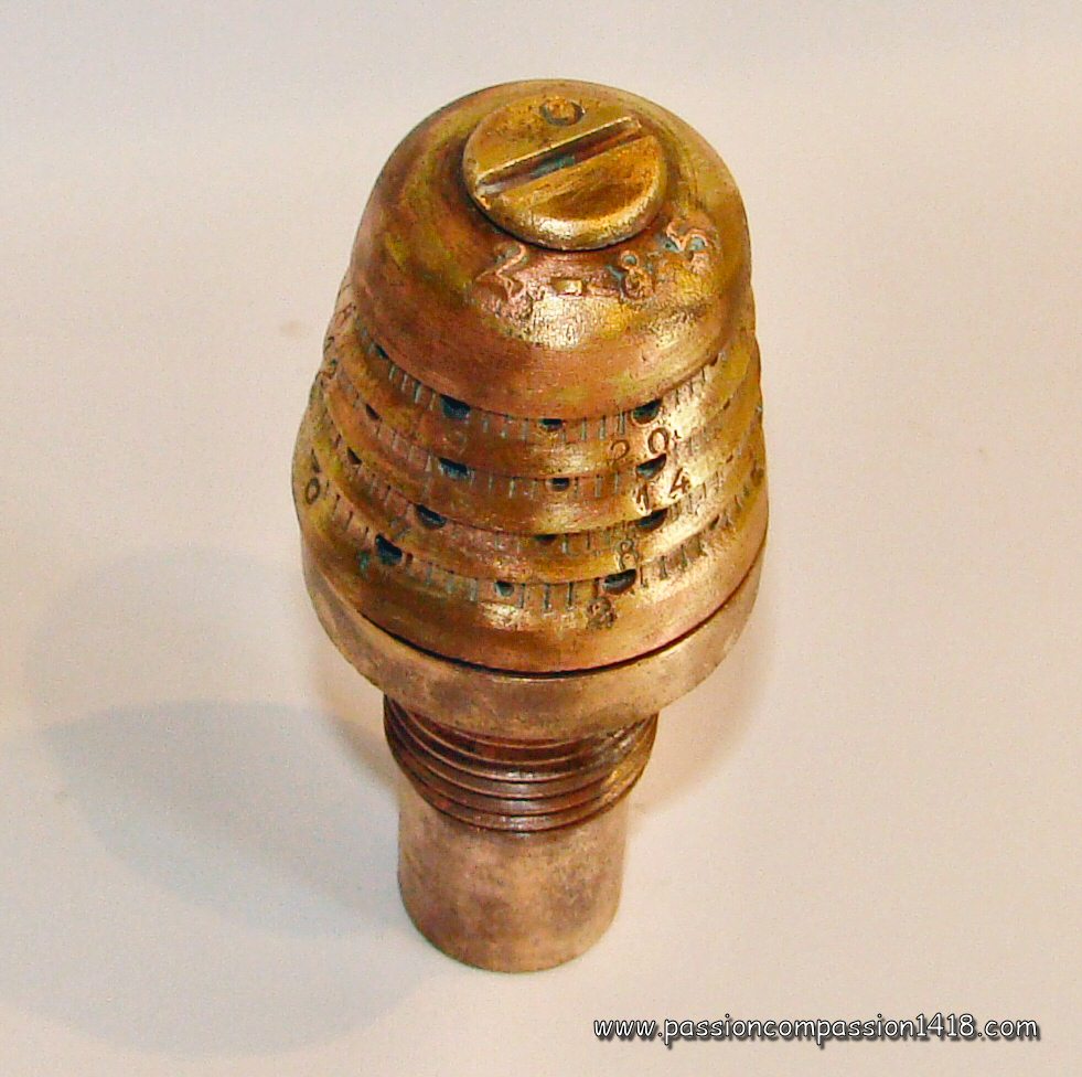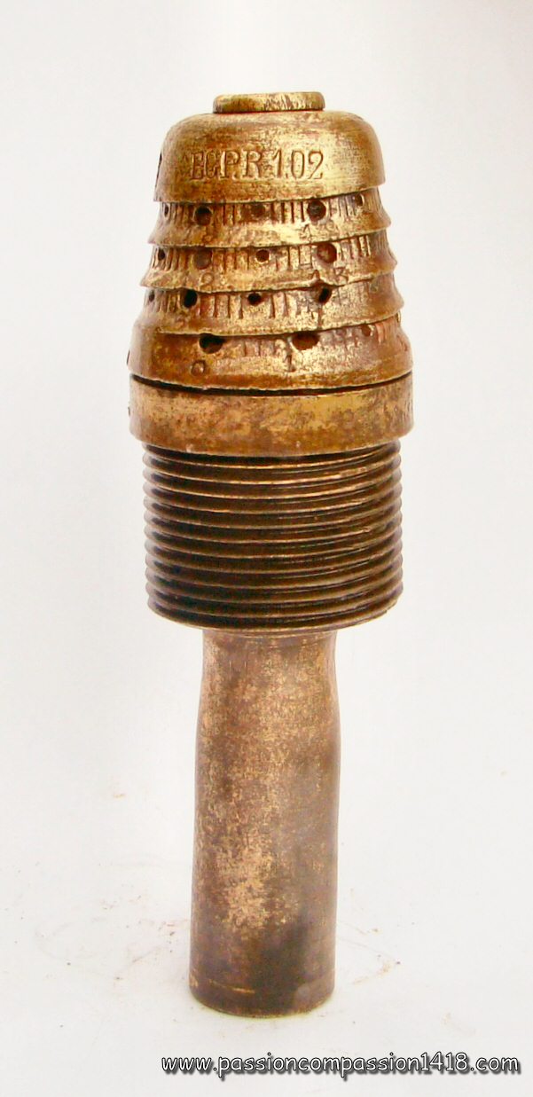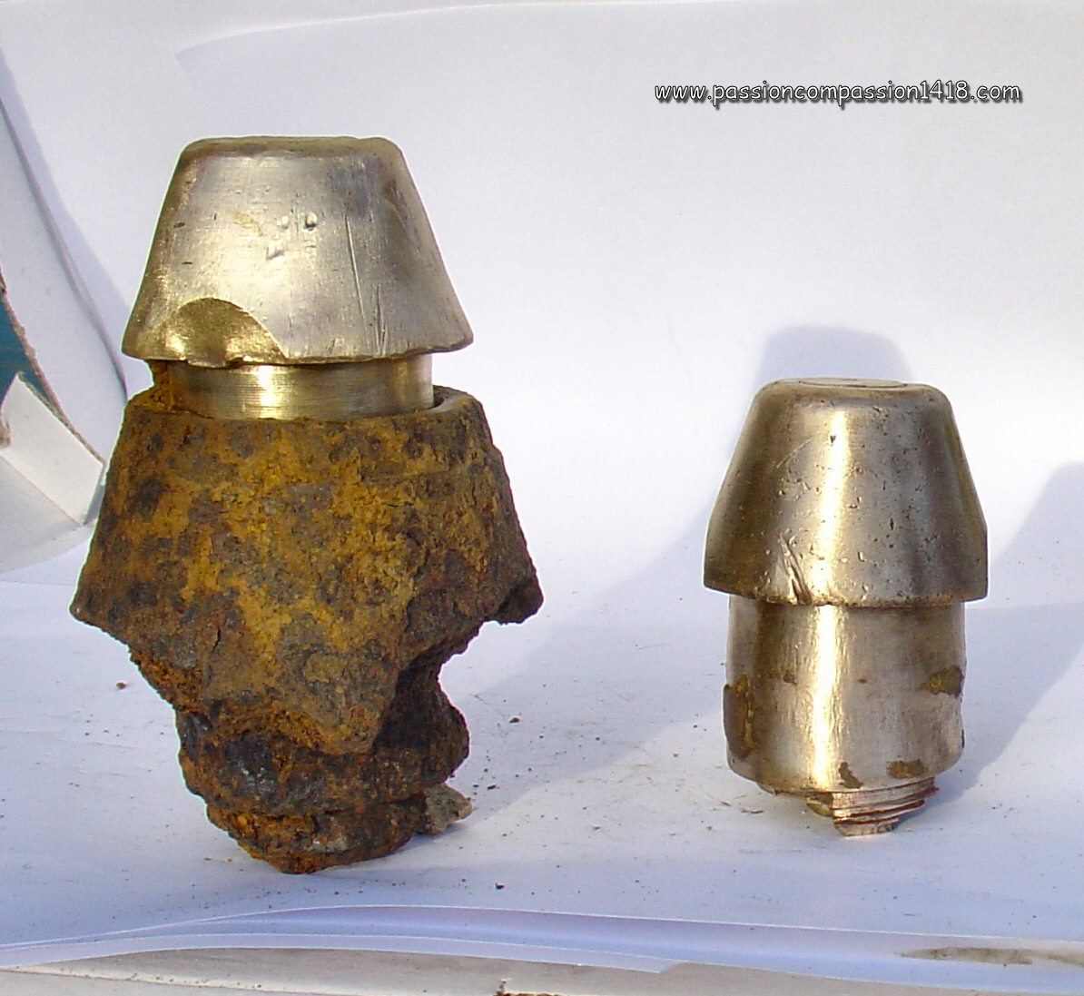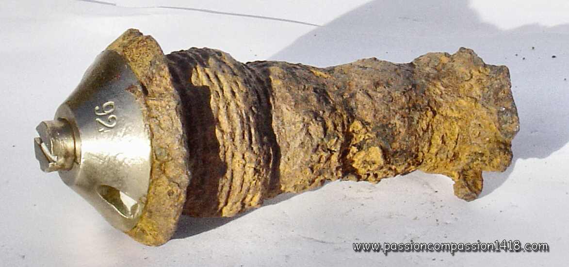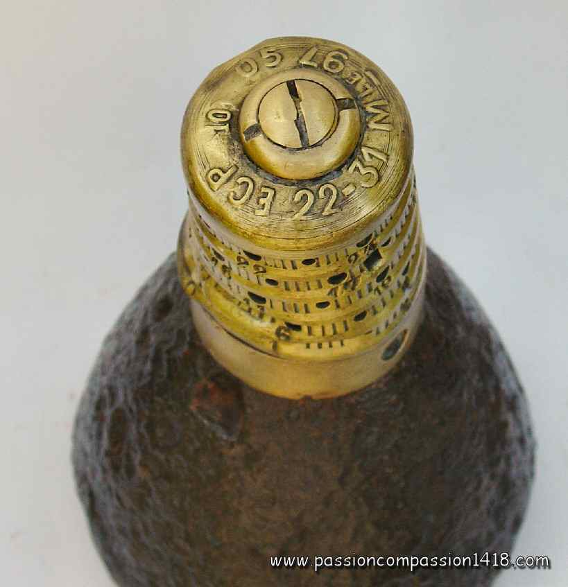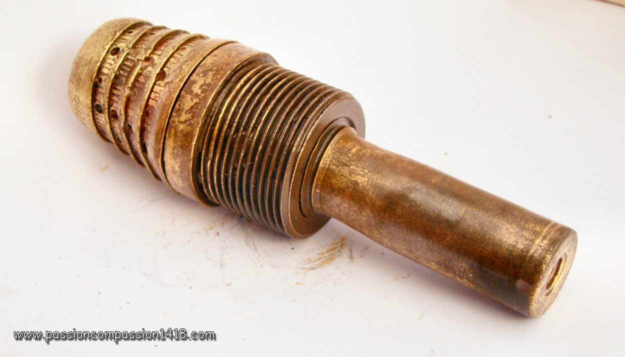 La fusée 22/31, sous sa version 1897 ou 1916 est la fusée à temps Française que l'on retrouve le plus fréquemment de nos jours sur les champs de bataille. |