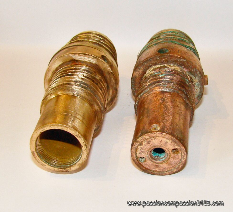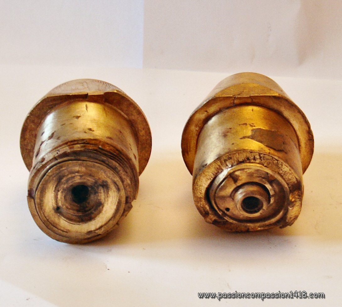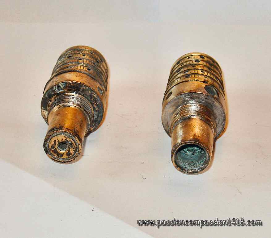 Fusée double effet 24/31 Mod 1916 ou fusante Mod 1915. Vue arrière de deux modèles, côté détonateur (douille porte-amorce femelle) |