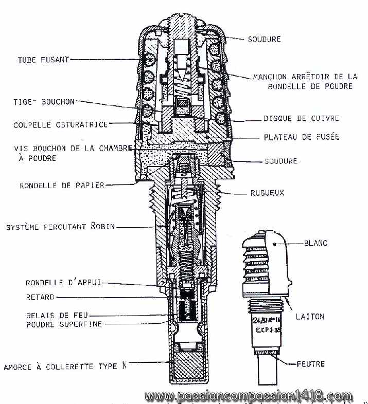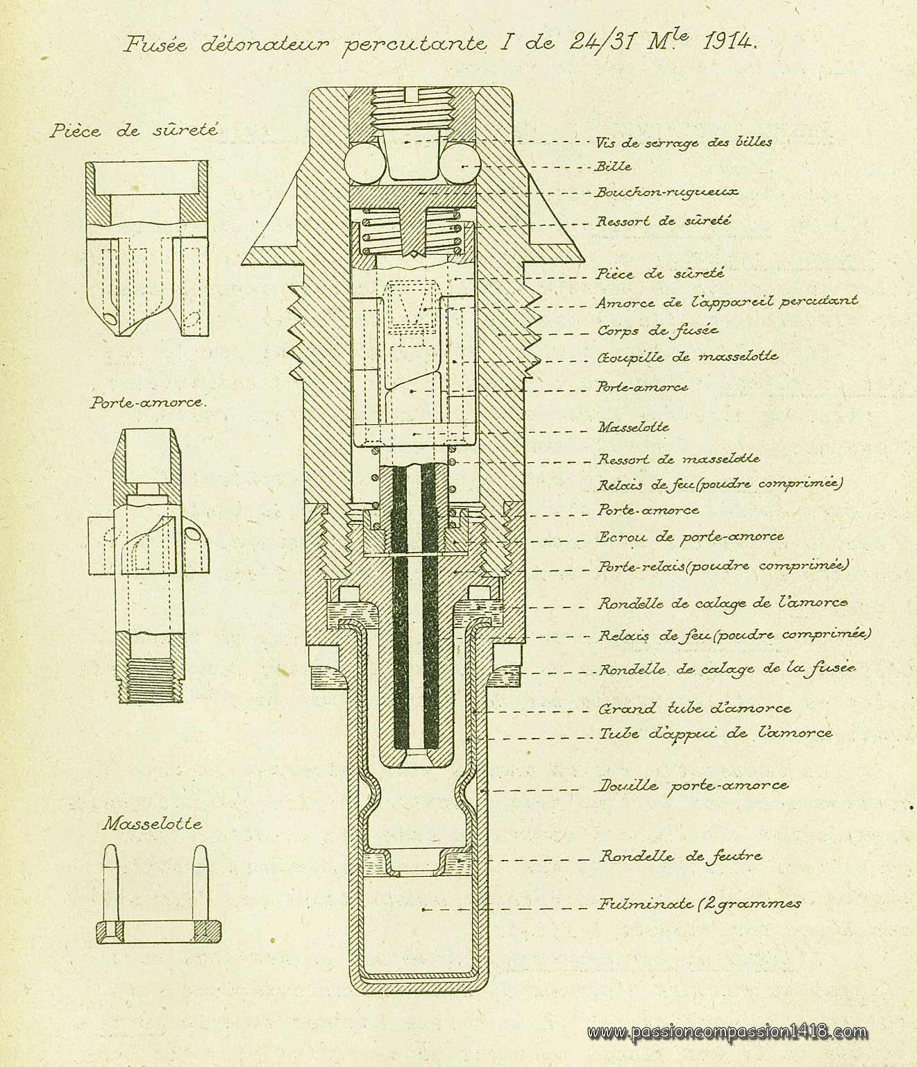 Fusée double effet 24/31 Mod 1916 ou fusante Mod 1915. Schéma d'époque |