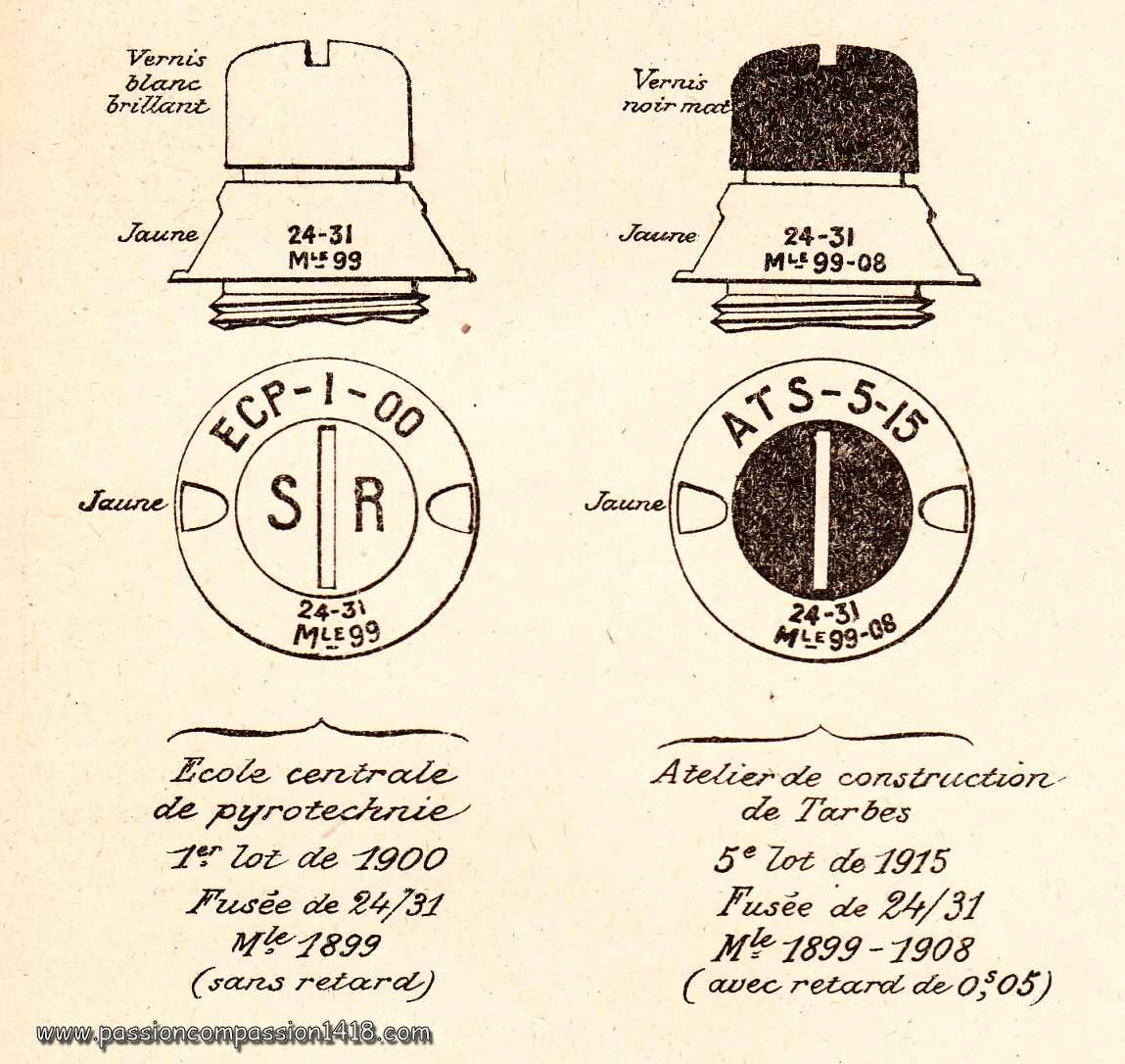 Fusée 24/31 Mod 99 ou 99-08. Schéma d'époque montrant des types de marquages de cette fusée. |