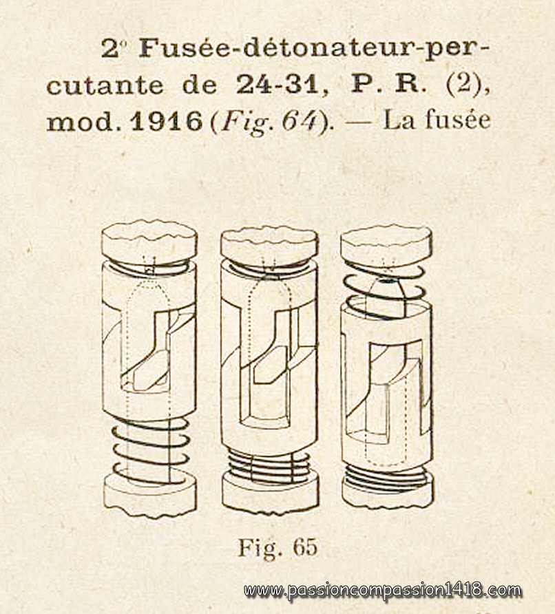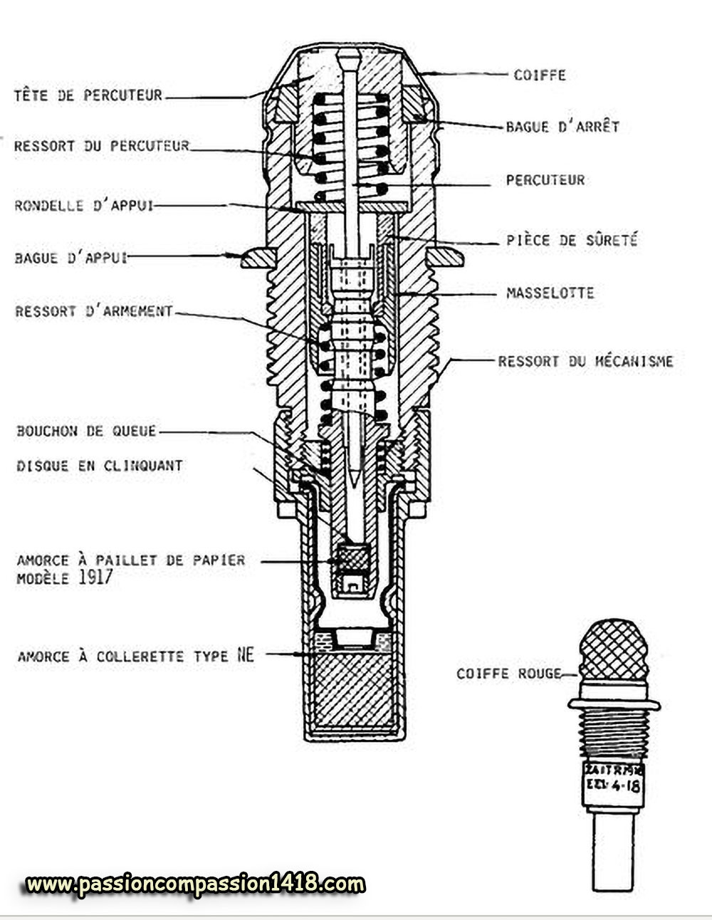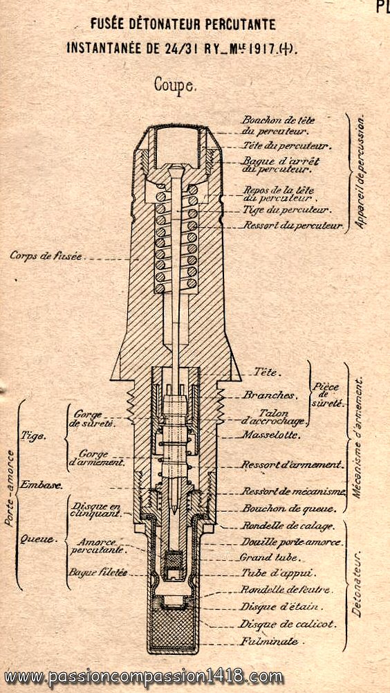 Fusée double effet 24/31 A Mod 1918 ou fusante Mod 1916. Schéma d'époque |
