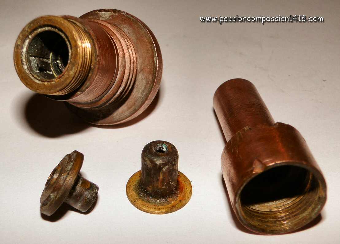 Fusée 30/55 Mod 1913. détail de la vis de remplissage de la chambre à poudre |