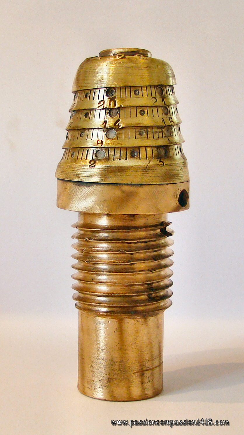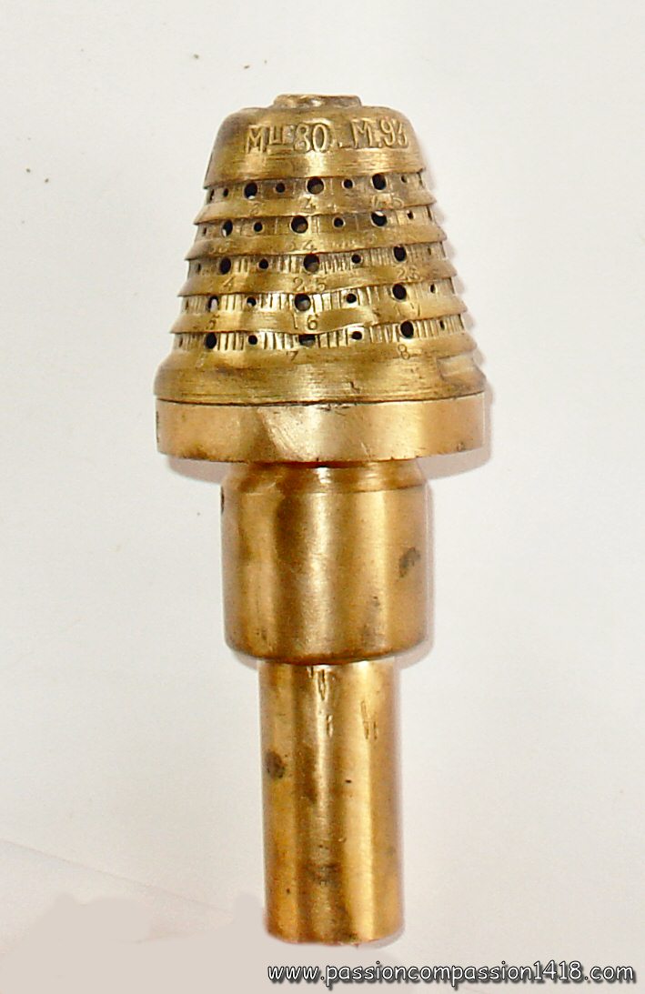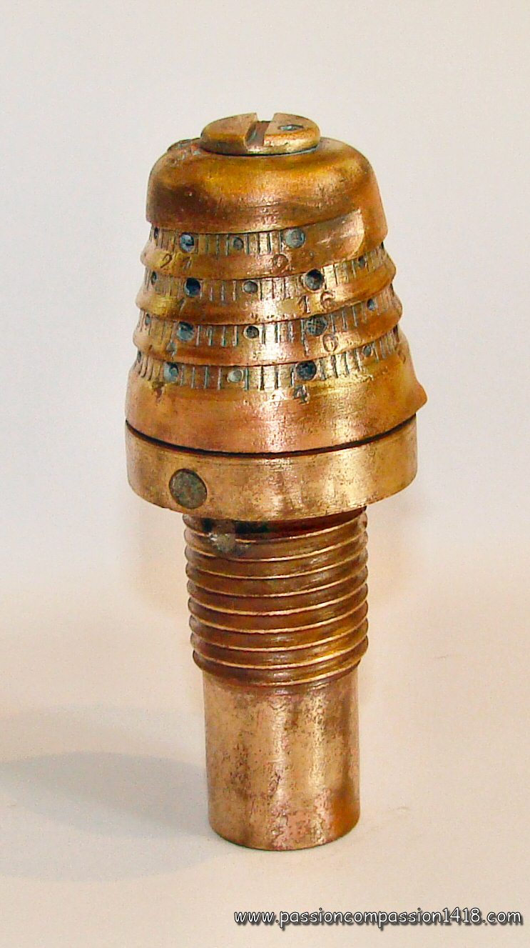 Fusée 30/55 Mod 1889. Autre exemplaire montrant le poinçonnage du débouchoir à la graduation '21 secondes' |
