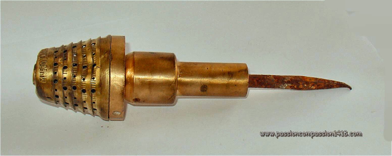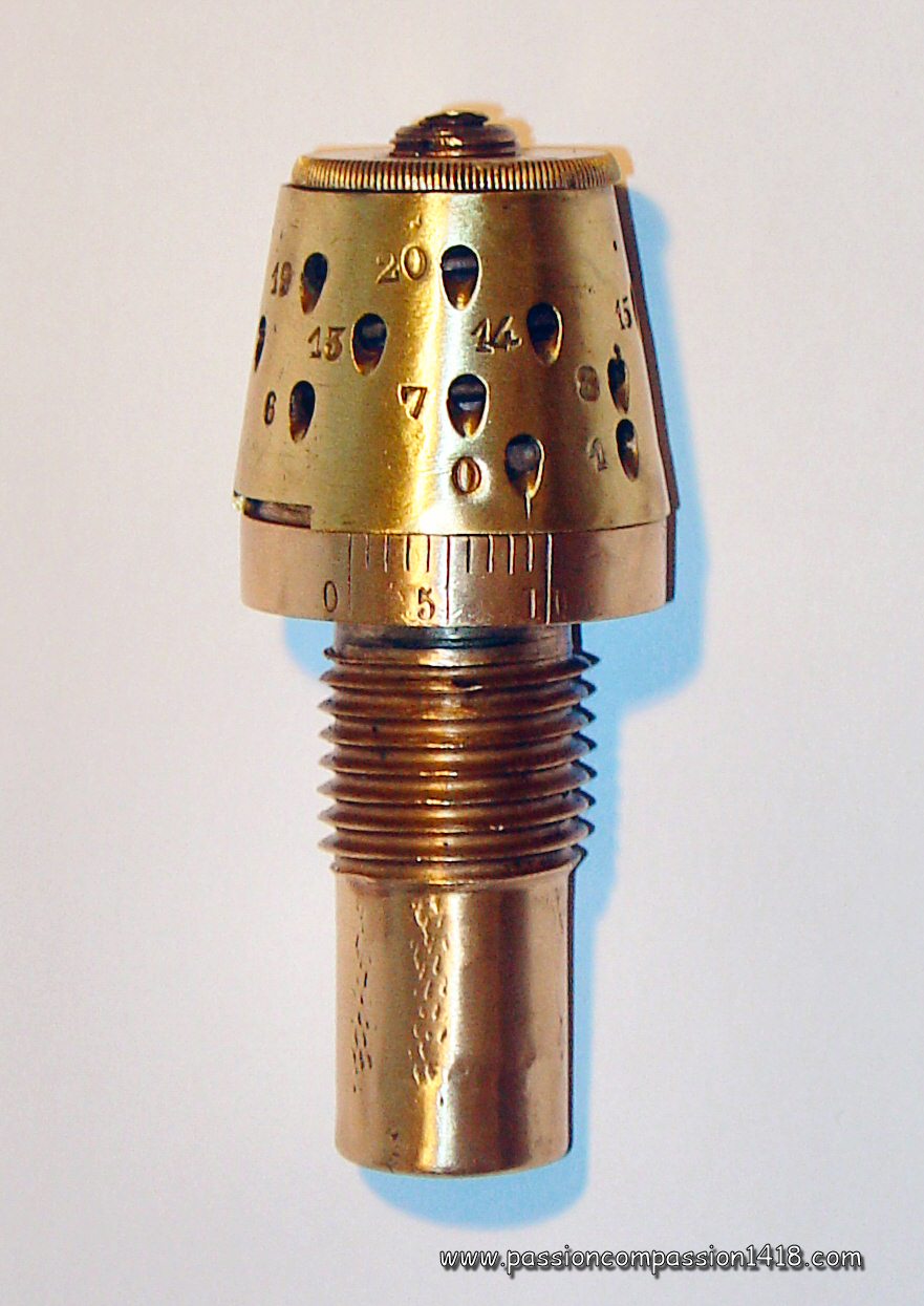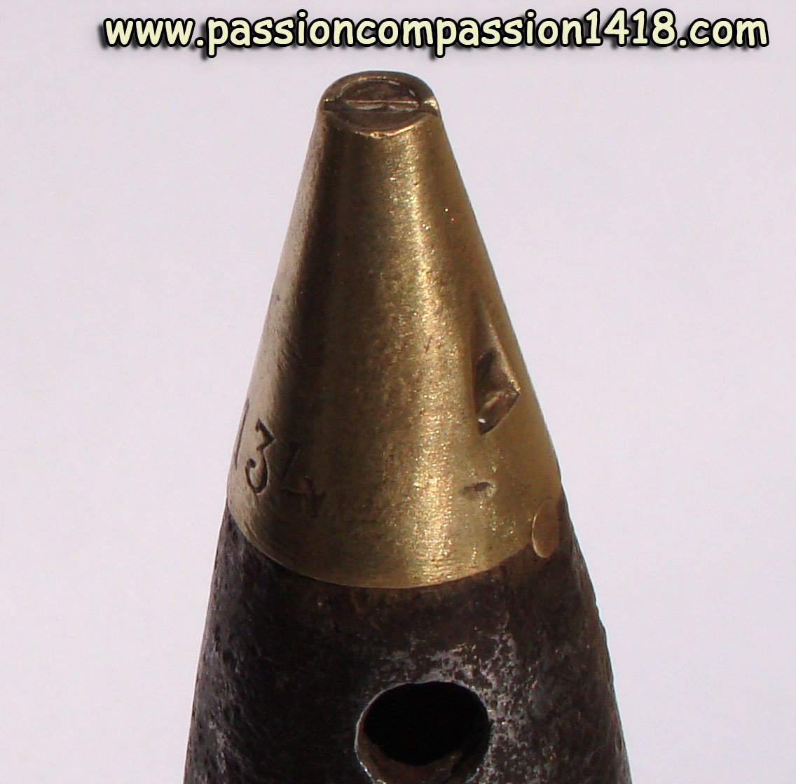 Fusée 30/55 Mod 1889. Autre exemplaire montrant le poinçonnage du débouchoir à la graduation '21 secondes' |