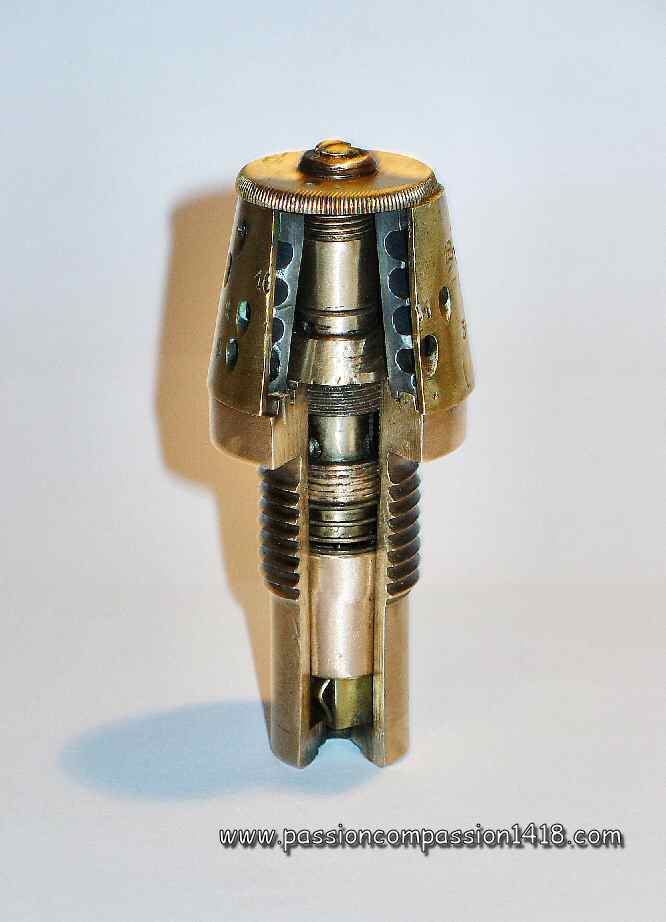 Fusée 30/55 Mod 1889. Coupe photographiée dans le Musée de l'Artillerie de Draguignan |