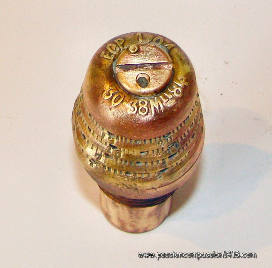 Fusée à double effet 30/38 Mod 1884 (T). Vue du dessus, marquages : 'ECP 1 - 04 - 30-38 Mle 84 |