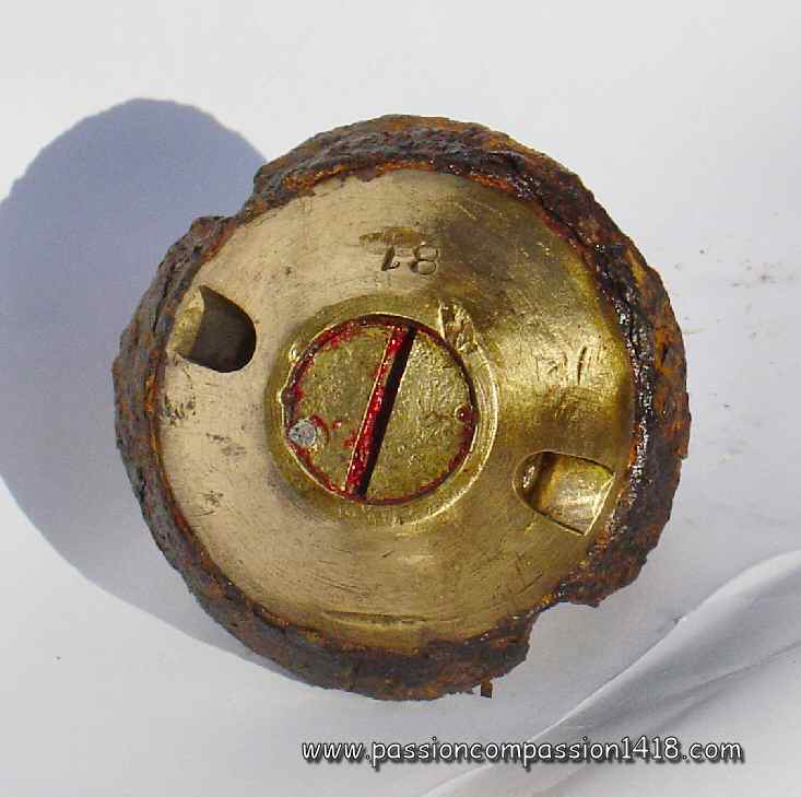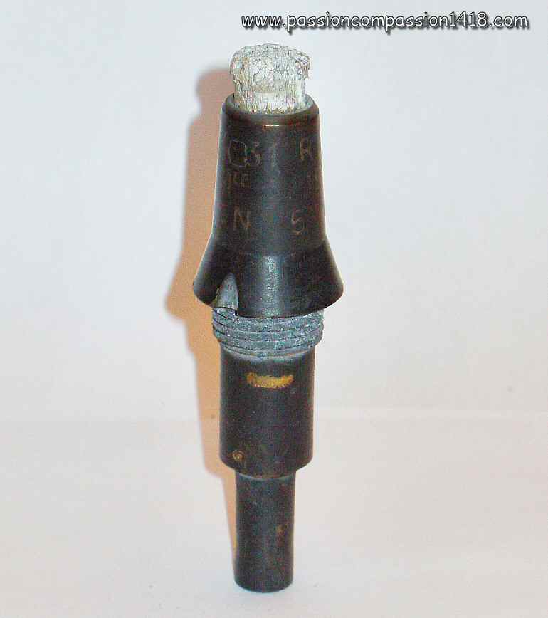 Fusée Mle 77 Desmarest. Marquages 'L4 7 4 16'. remarquer la rondelle d'etancheite en etain. |